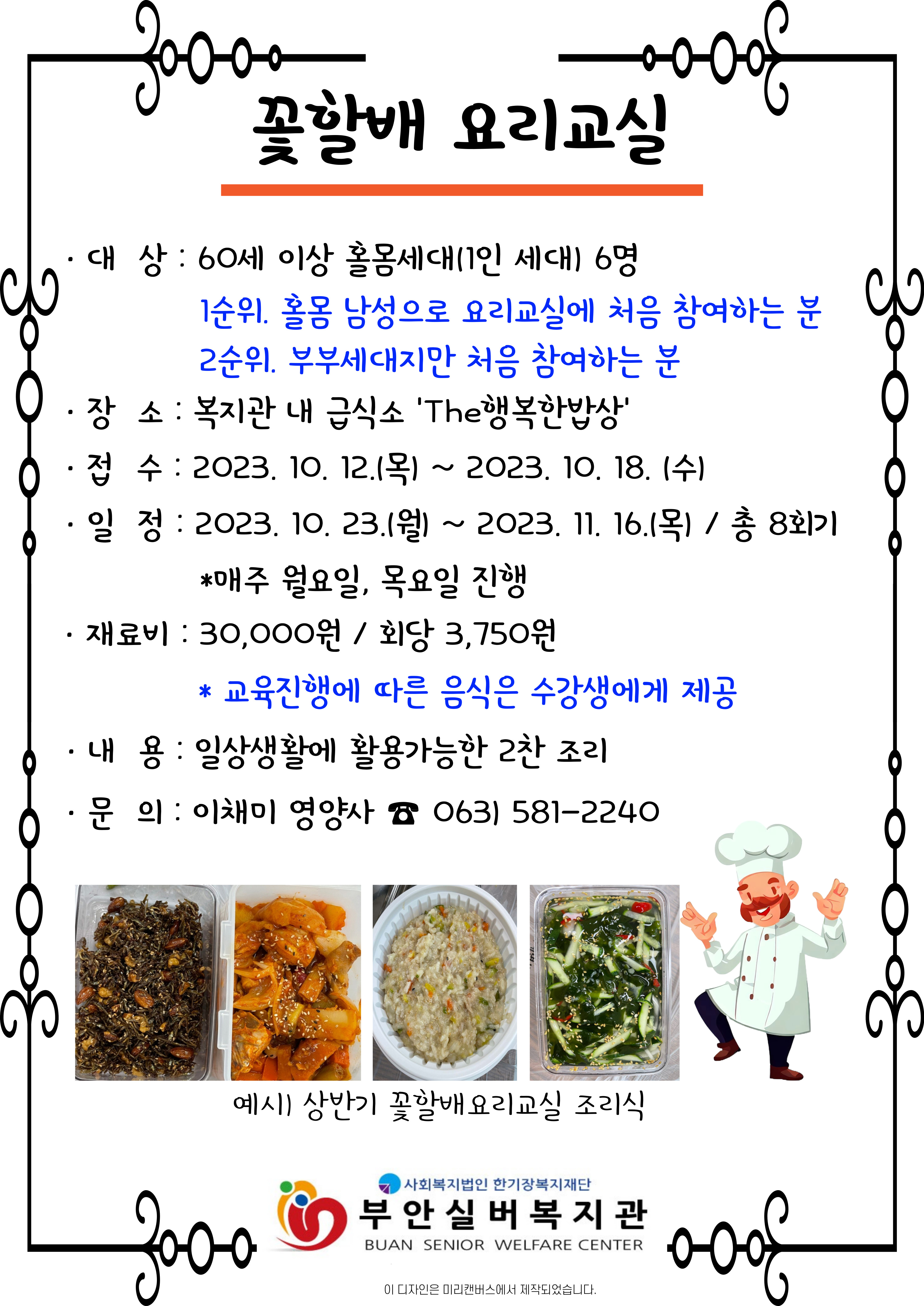 2023년 하반기 꽃할배 요리교실 참여자 모집안내