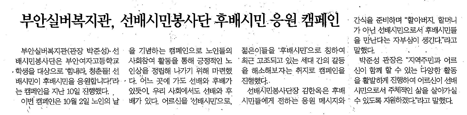 부안실버복지관, 선배시민봉사단 후배시민 응원 캠페인 / 2023년 9월 25일 (제 725호)