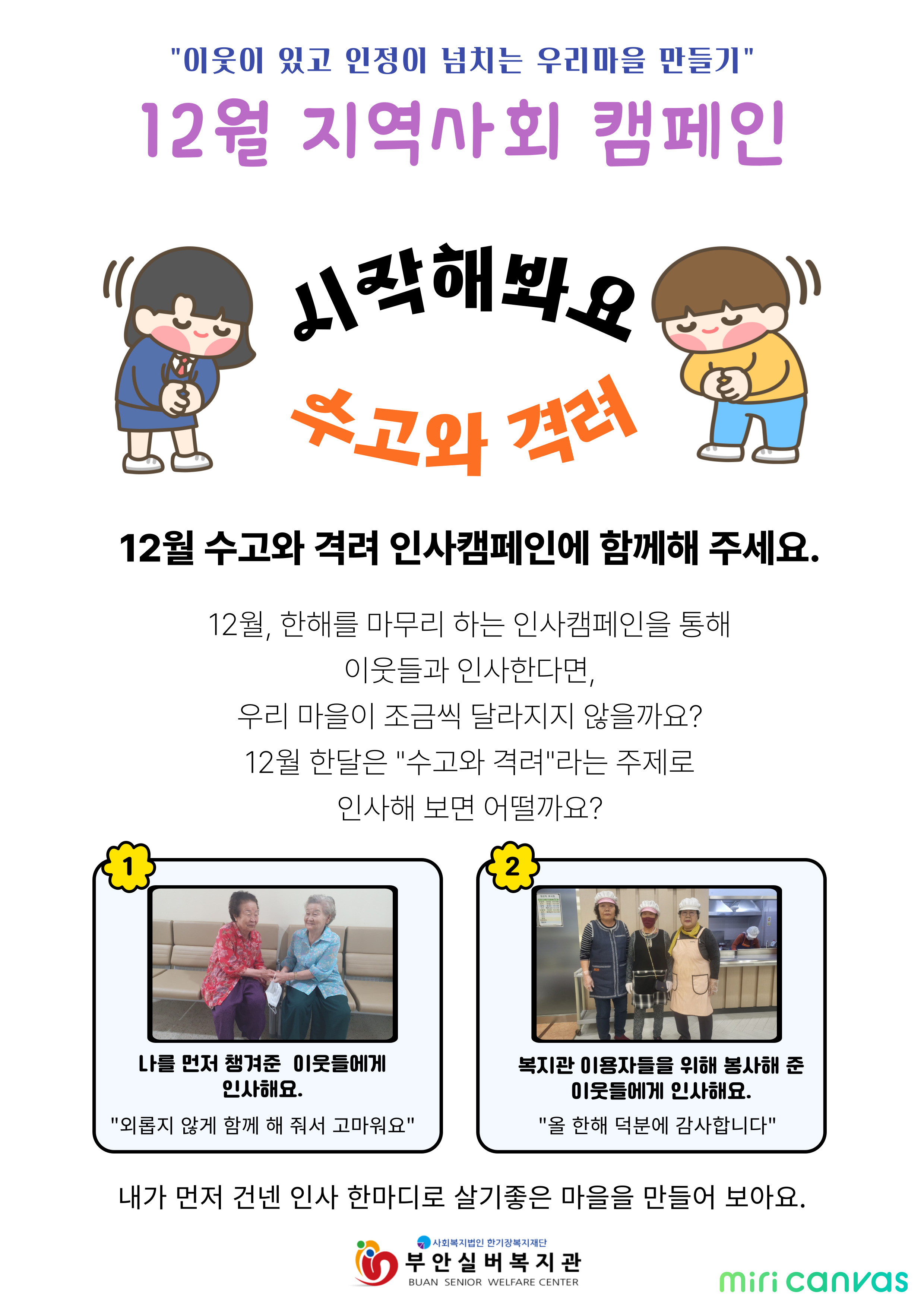 12월 한달은 '수고와 격려'라는 주제로 인사합니다.