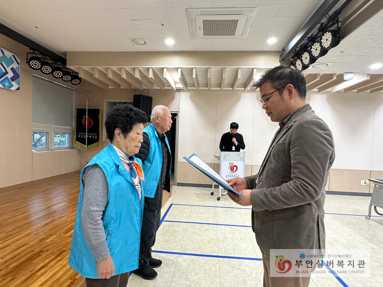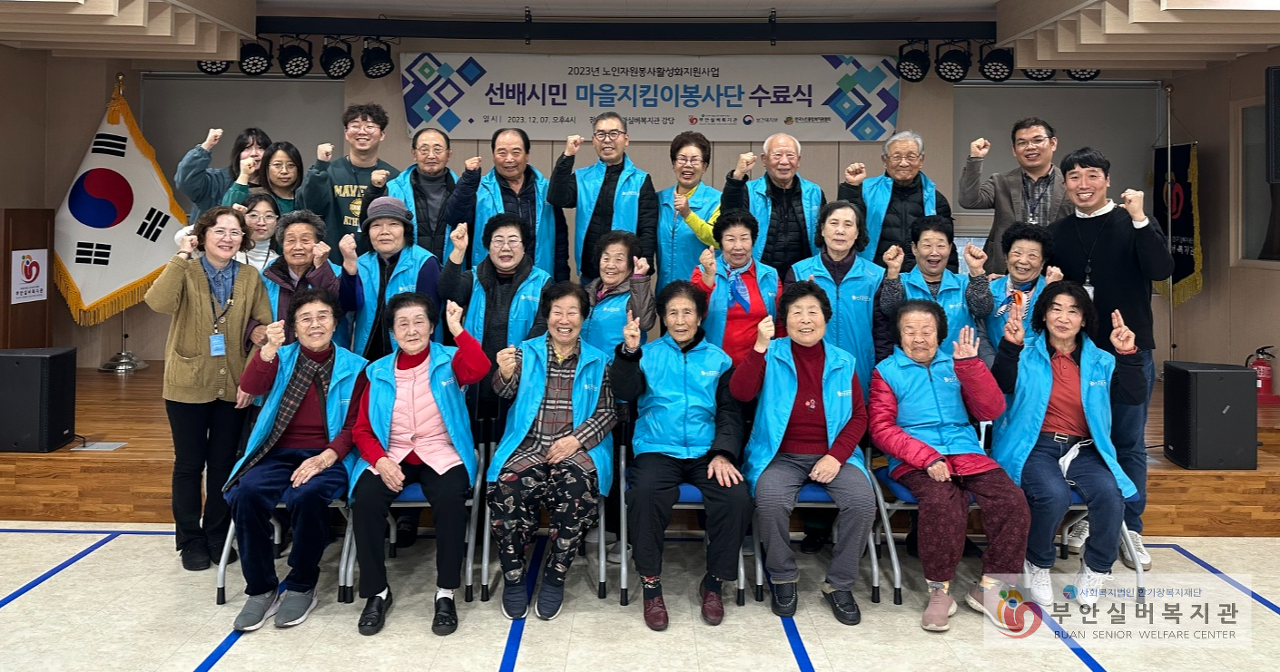한국노인종합복지관협회와 보건복지부에서 지원하는 2023년 노인자원봉사활성화지원사업 선배시민 '마을지킴이' 봉사단 활동을 마무리하는 수료식이 12월 7일(목)에 진행되었습니다.
