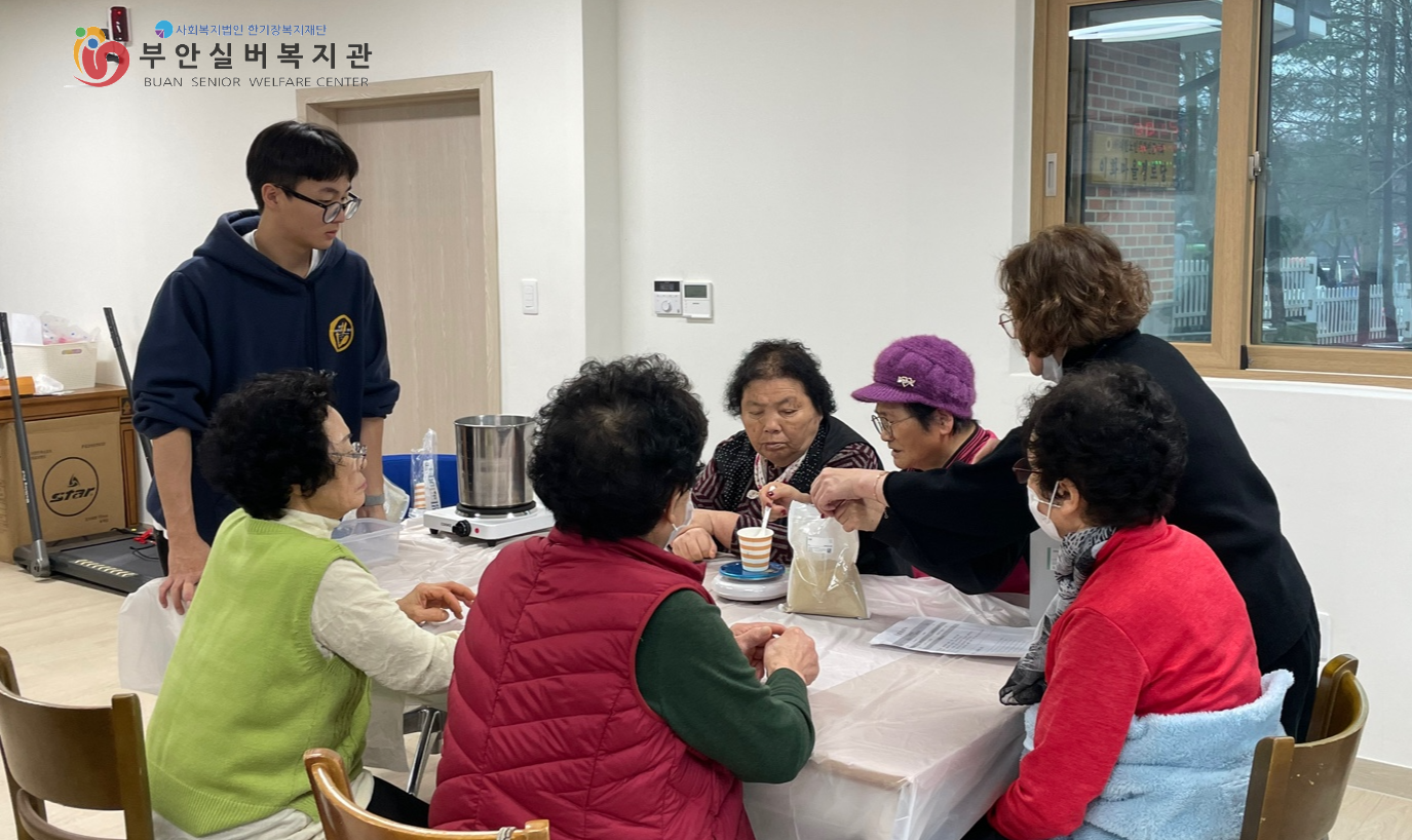 2022년부터 누적되었던 사업의 노하우를 기반으로 2024년에는 부안실버주택, 부안 주공1차와 함께 부안 서외주공 3단지를 제3의 거점지역으로 사업을 확대하여 진행하고자 주민 공동체활동을 11월 29일, 12월 15일 2회에 걸쳐 단지내 경로당에서 진행했습니다. 주공 3차 어르신들에게 부안실버복지관을 소개하고,  주공 1차 아파트에 이어 2024년 이웃관계안전망 만들기 사업을 함께 하기 위해 어르신들을 만났습니다. 처음 공동체활동을 홍보할 때는 어색한 미소와 어딘가 미덥지 못한다는 표정을 지었던 어르신들이 함께 강정을 만들고, 비누를 만들며 "반갑다",  "고맙다" 큰소리로 인사도 해 주십니다.