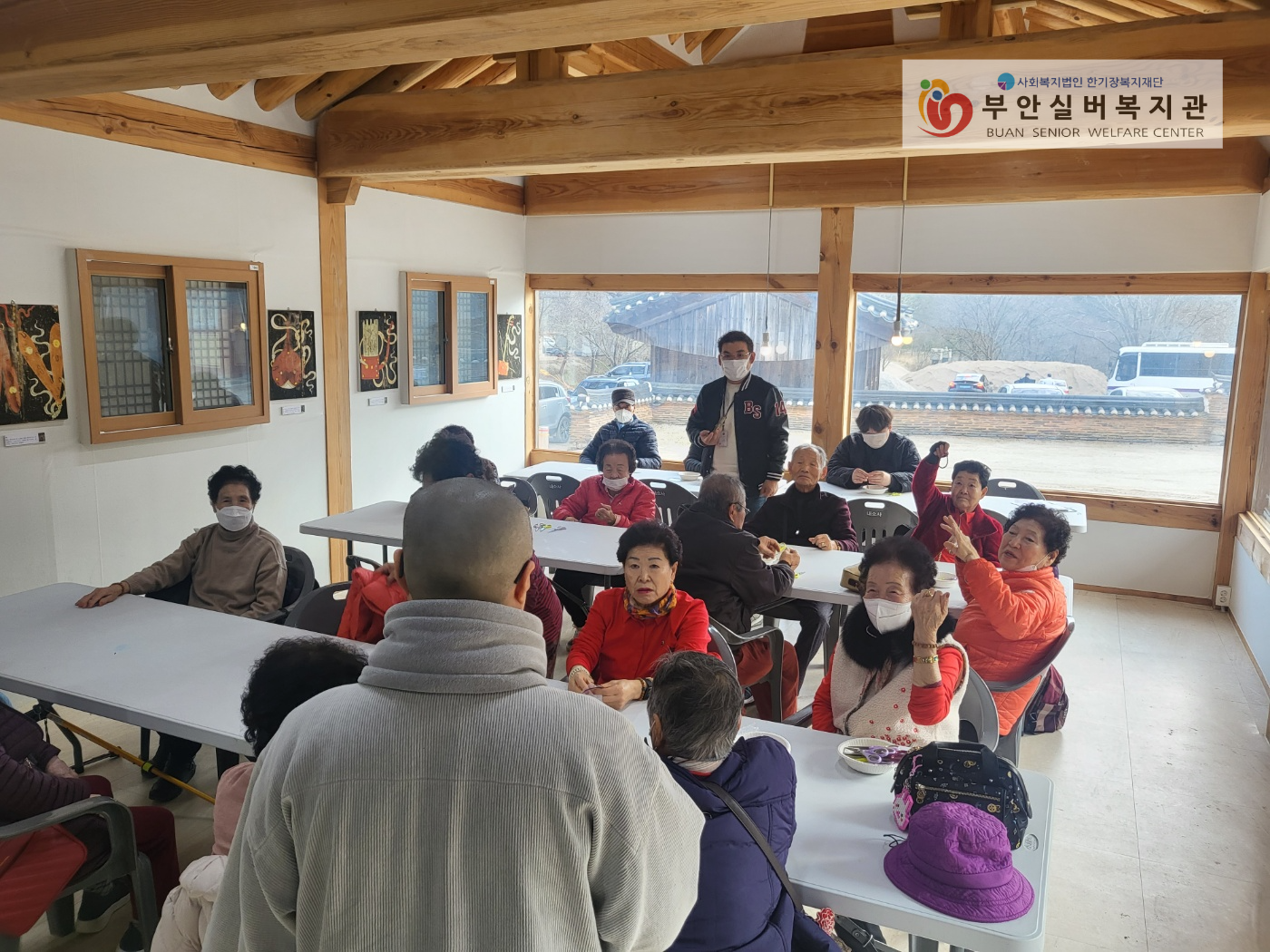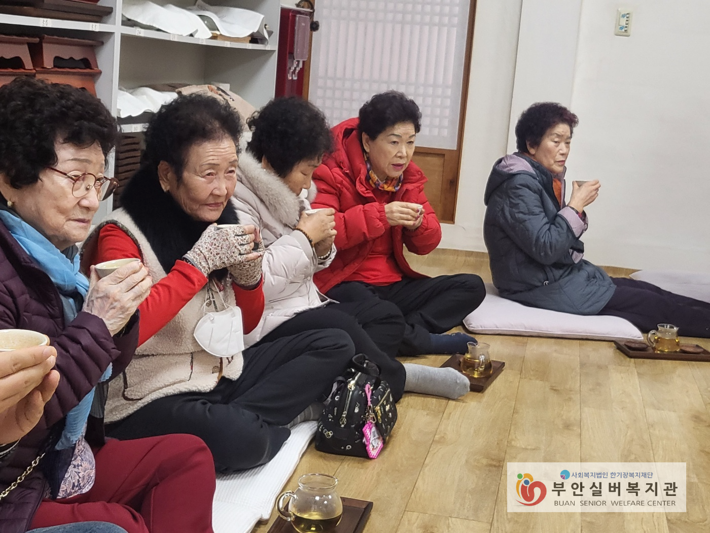 날씨는 쌀쌀했지만 어르신 모두 즐겁게 프로그램을 진행했습니다. 내소사 템플스테이 체험은 다도체험과 팔찌 만들기를 진행했습니다. 부안에 오래 사셨지만, 내소사에 첫 방문이라는 어르신도 계셨습니다.