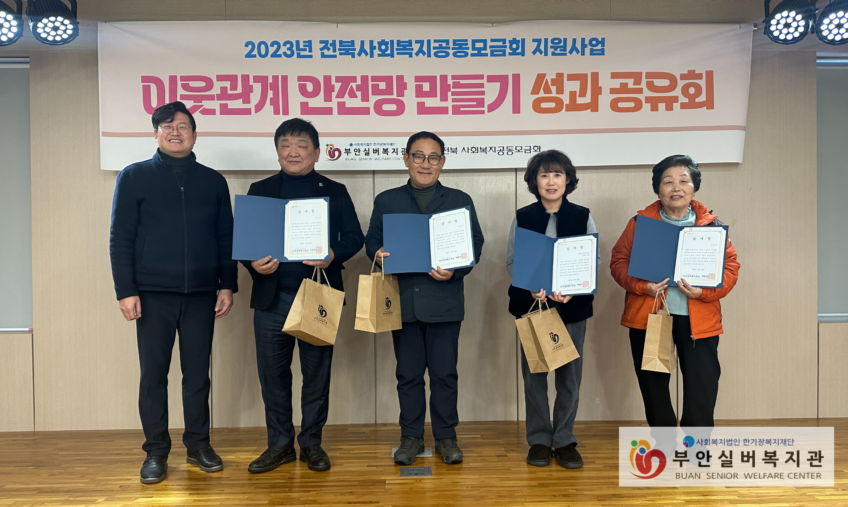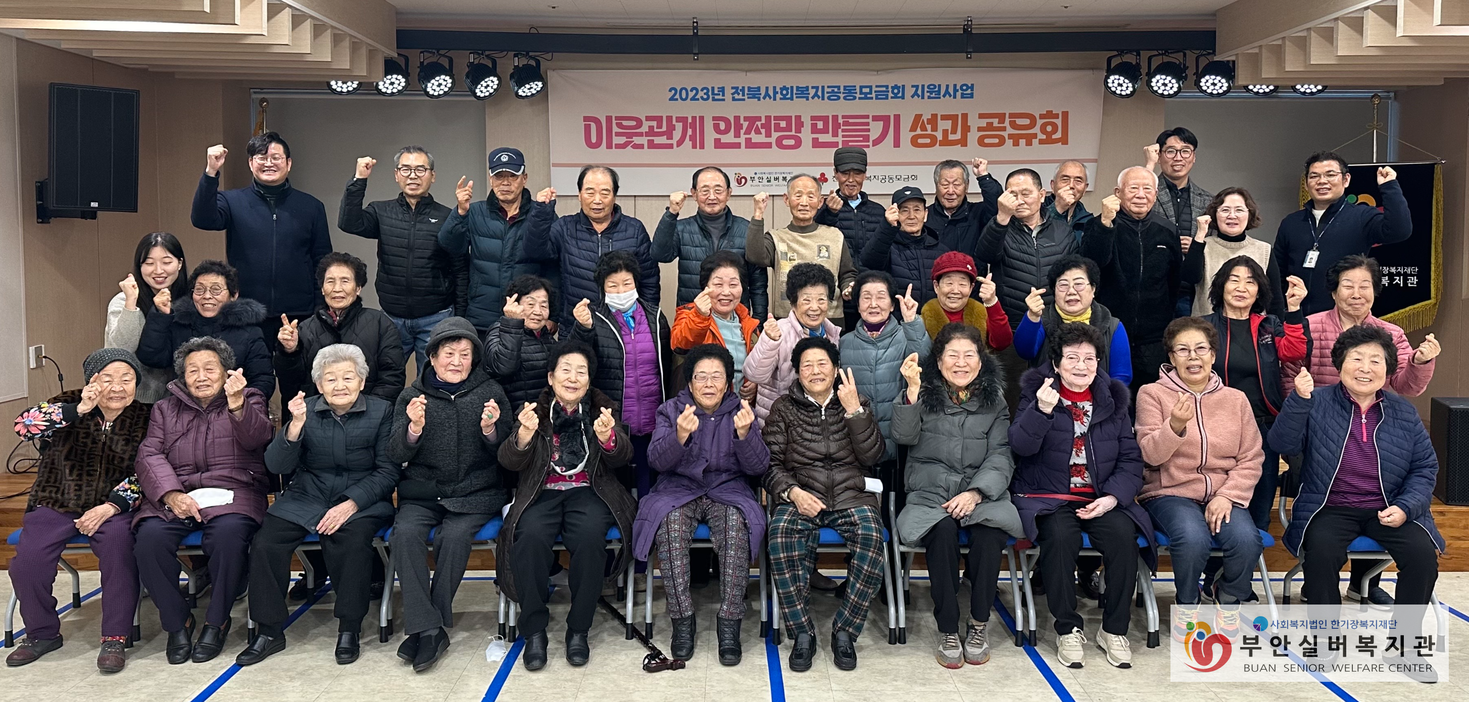 부안실버복지관은 2023년 전북사회복지공동모금회 지원사업 이웃관계안전망 성과 공유회를 열어 공공실버주택, 남성 홀몸노인 자조모임, 주공 1차 아파트 등 참여자와 함께 지난 1년간의 이웃근황살핌, 공동체활동, 사회적고립노인 살핌활동, 생신잔치 등의 사업을 되돌아보는 시간을 지난 26일에 가졌습니다.