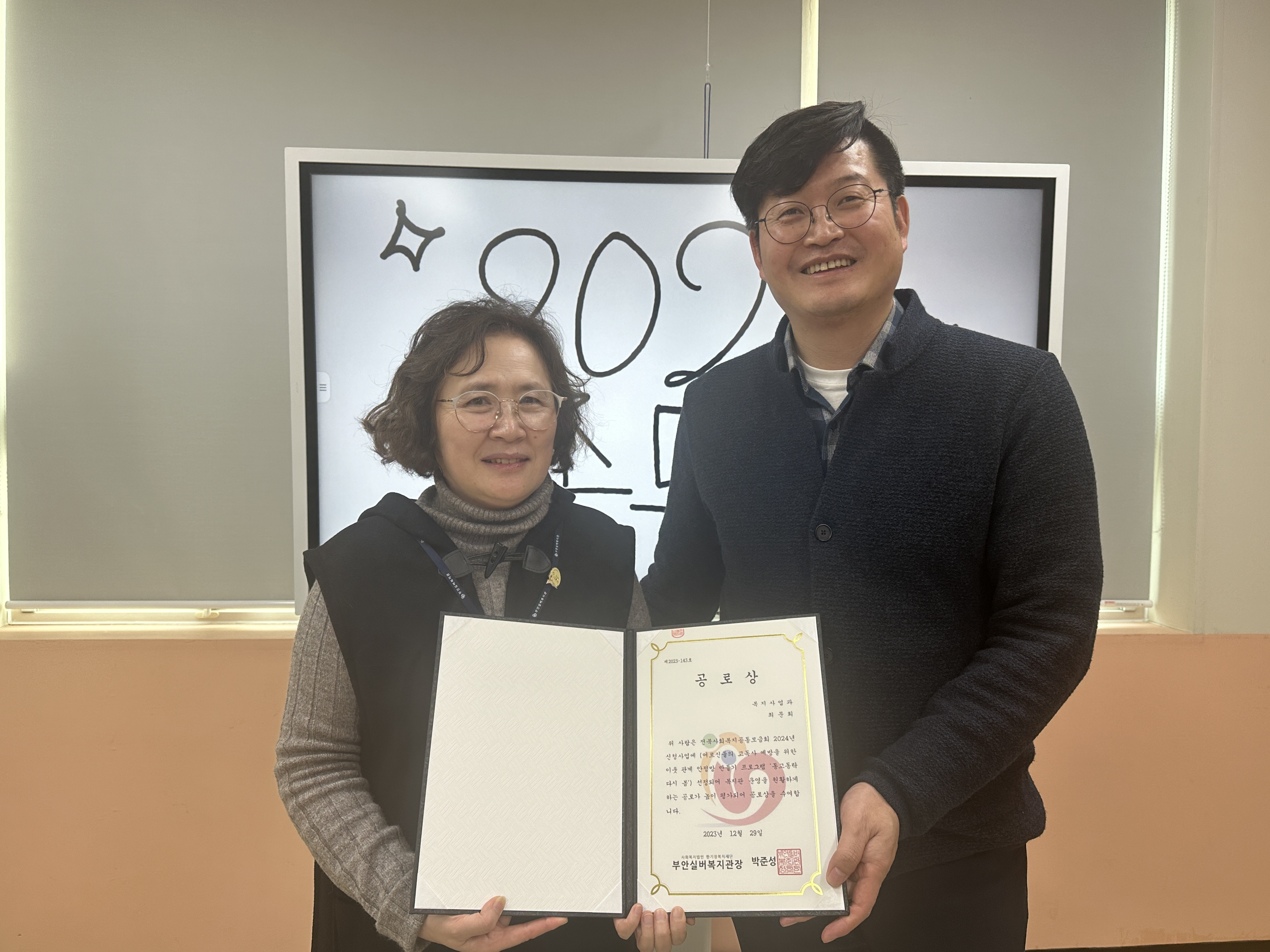 2024년 전라북도사회복지공동모금회 기획사업 선정에 기여한 최문희 사회복지사와 ,