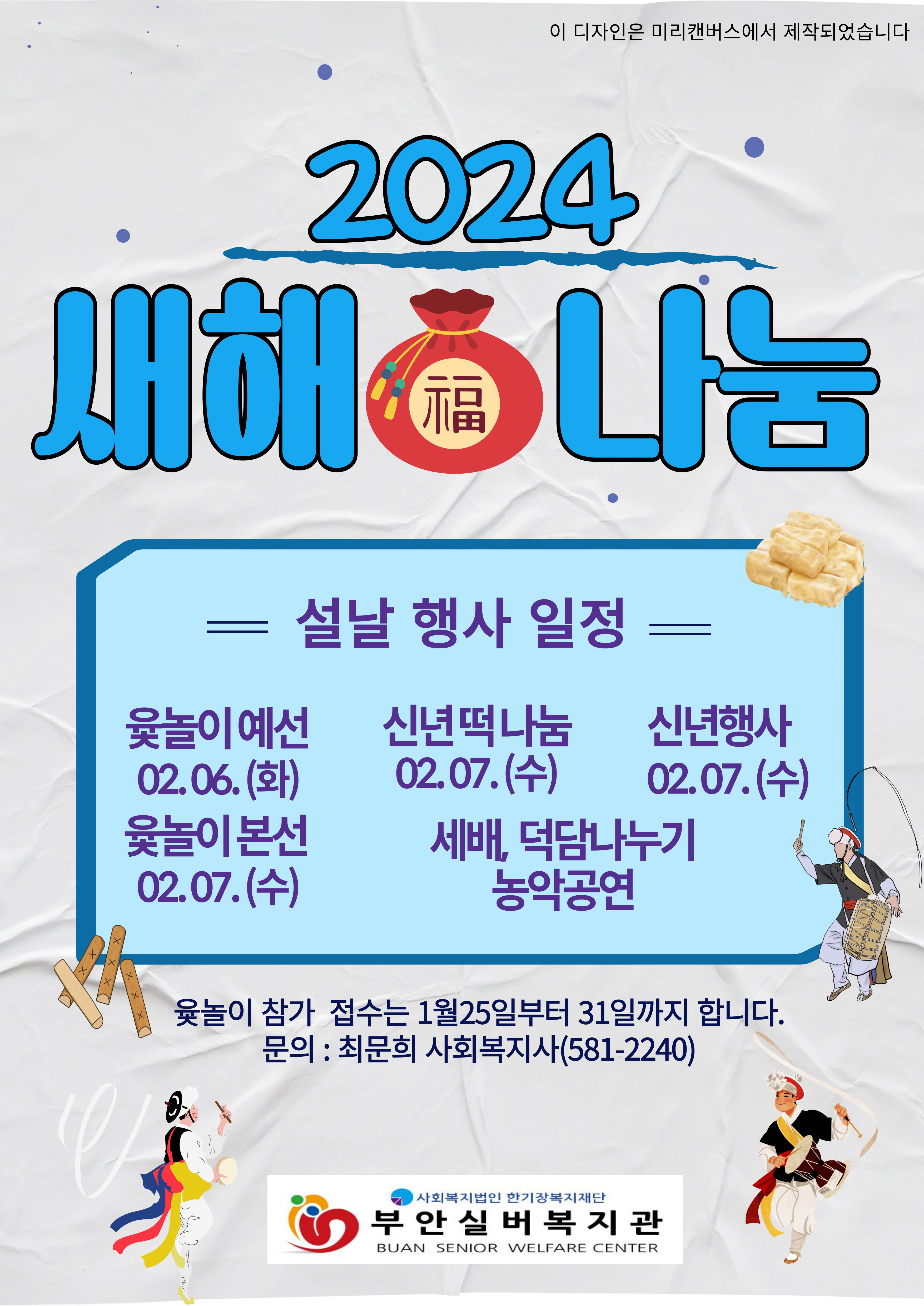 부안실버복지관에서 2024년 설 명절을 맞이하여 '우리 모두 복 나눔' 행사를 진행합니다!