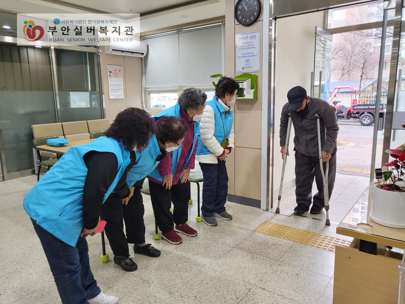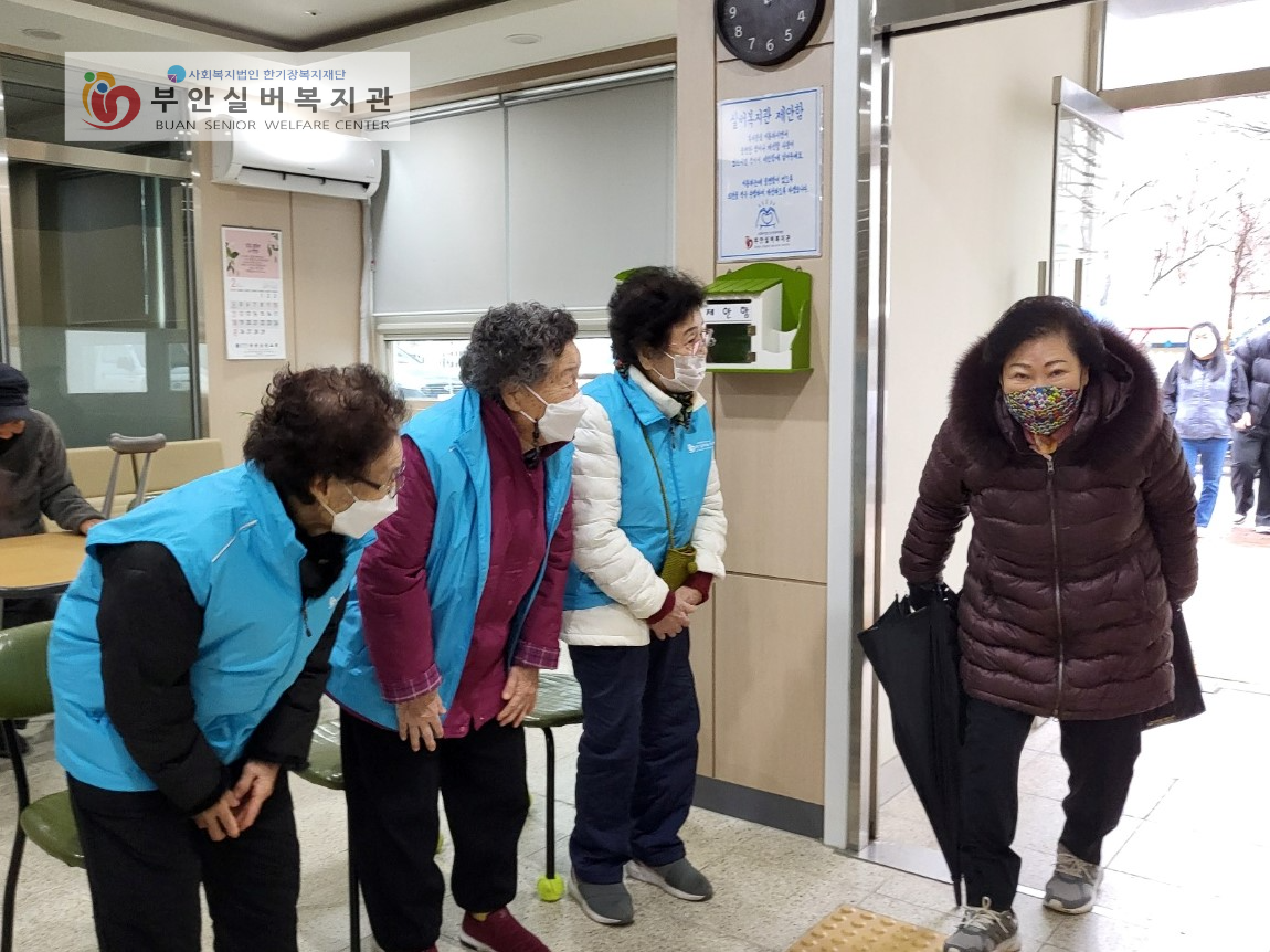 복지관 입구에 서서 들어오는 어르신들 한분 한분에게 새해 인사를 하는 주민활동가들을 보고 다정하게 손을 잡고 답하는 분도 계시고, 부끄러워 눈을 마주치지 못하고 다른 곳을 보면 걸어가는 분들도 계십니다. 하지만 인사를 하는 주민활동가나 받는 어르신 모두 웃음꽃이 피었습니다.