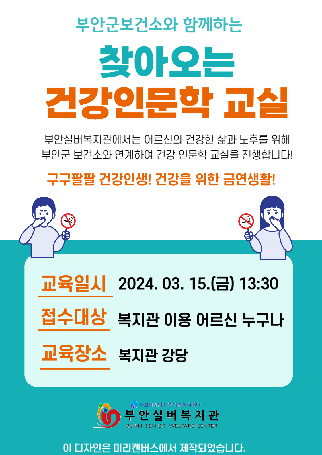 건강인문학 교실_부안군보건소 연계[구구팔팔 건강인생! 건강을 위한 금연생활] 진행