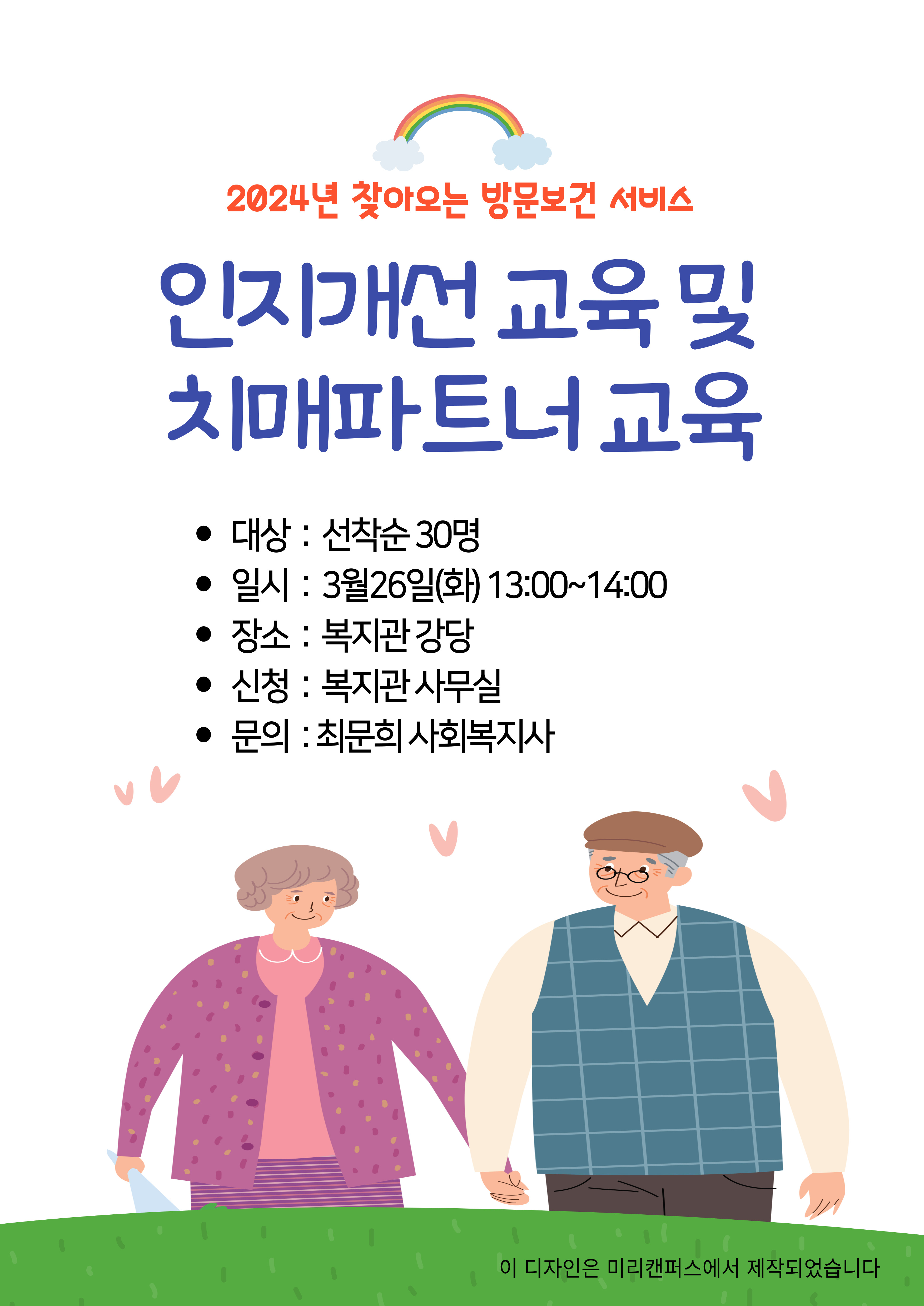 '2024년 찾아오는 방문보건서비스'로 부안군치매안심센터에서 치매관련 교육 및 상담을 진행합니다.