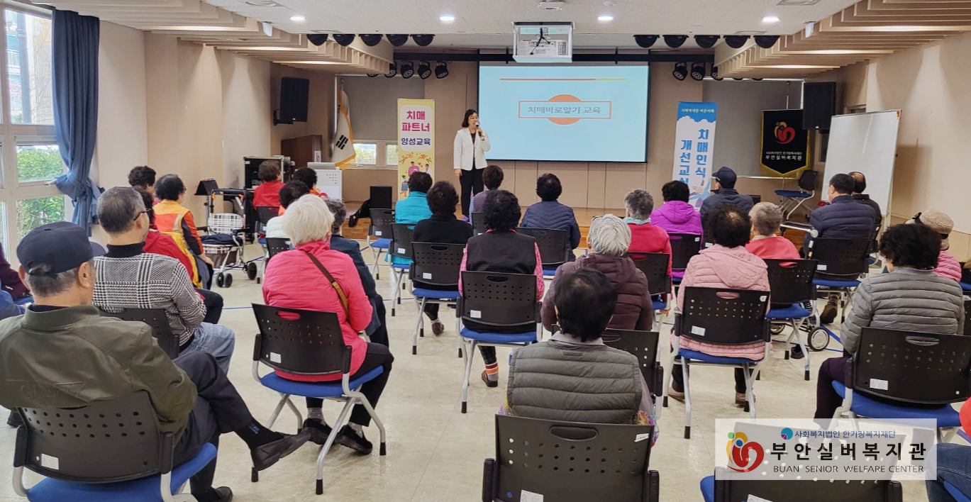 많은 어르신들이 인지저하 증상을 호소하고 있습니다. 치매는 이때부터 관리가 되어야 한다고 하지만, 아직 국가관리시스템으로 이를 관리하기에는 한계가 있는 것 같습니다. 부안실버복지관에서는 부안군치매안심센터와 함께 치매 인식개선 교육을 통해 치매를 예방하고 관리할 수 있도록 안내하고 있습니다.