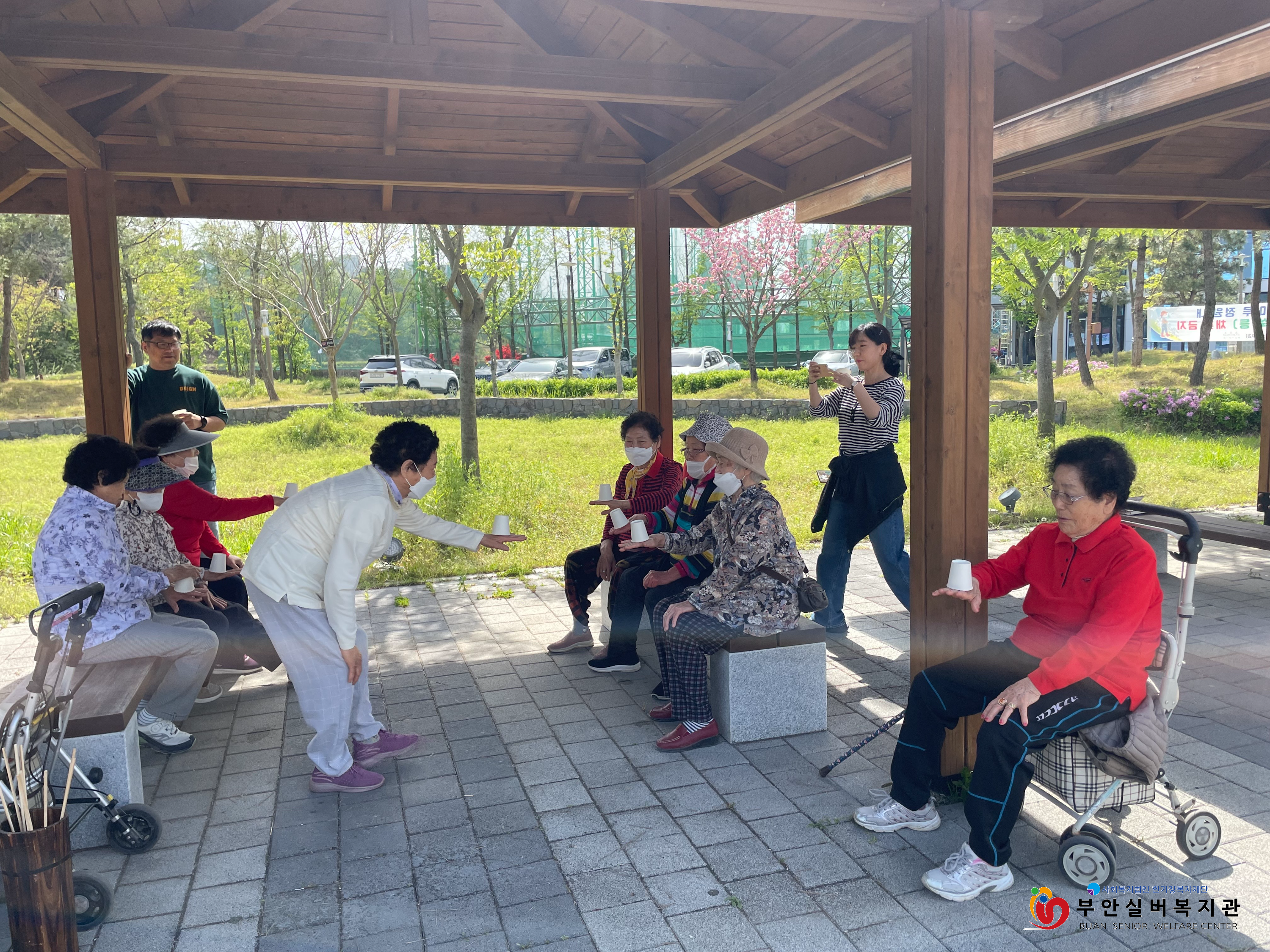 팀을 나누어 투호 놀이, 종이컵을 이용한 게임을 했습니다. '파이팅!' 하며 응원하고, 성공하면 박수를 치며 기뻐하셨습니다. 개인전으로 신발 멀리 던지기 게임을 했습니다. 한 주민 활동가는 지팡이를 지지대 삼아 신발을 던지니 멀리 잘 날아간다며 자신의 지팡이를 내어 주셨습니다. 신발을 가장 멀리 던진 세 분의 주민 활동가들께 선물을 드렸습니다.