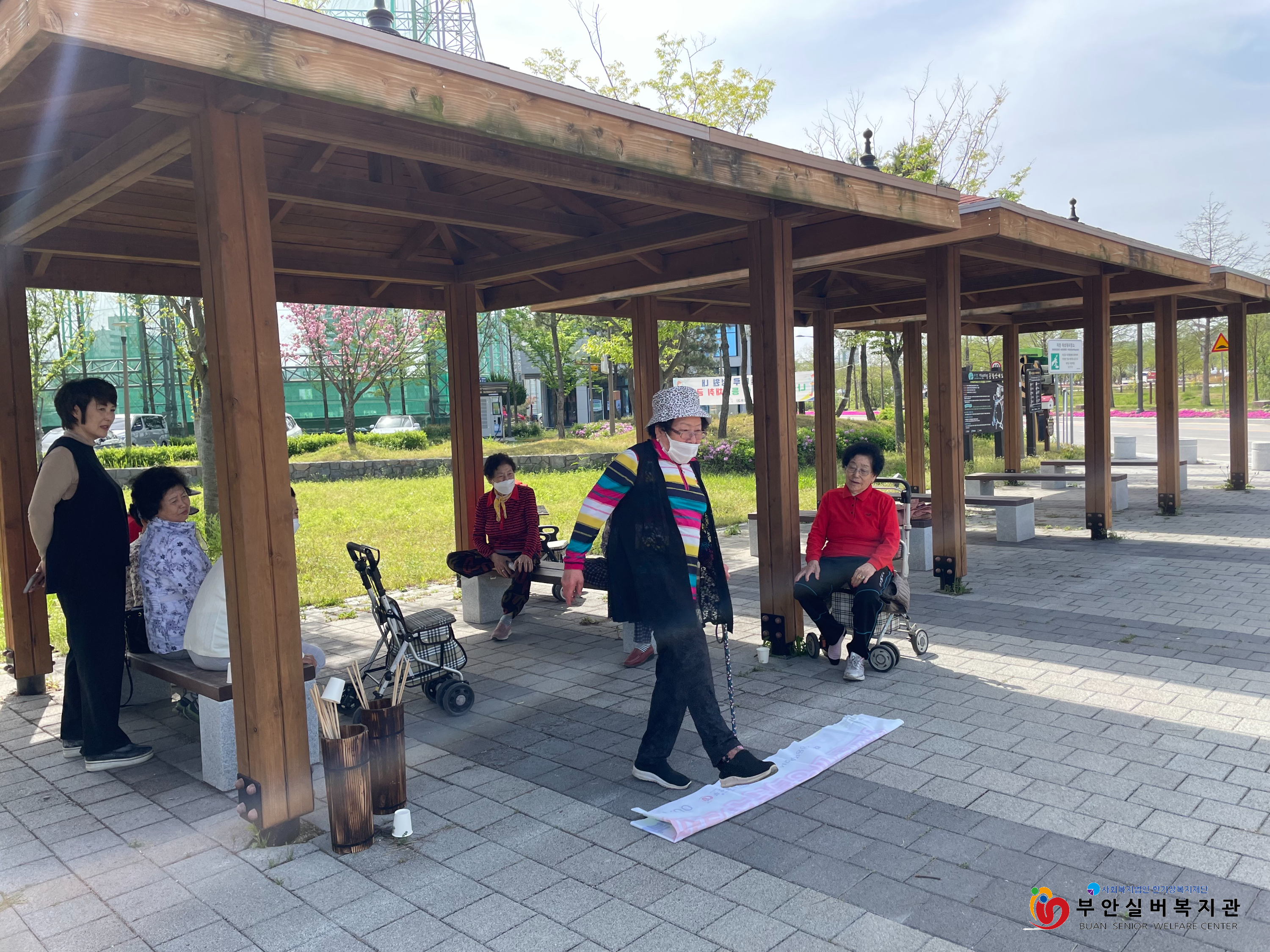 팀을 나누어 투호 놀이, 종이컵을 이용한 게임을 했습니다. '파이팅!' 하며 응원하고, 성공하면 박수를 치며 기뻐하셨습니다. 개인전으로 신발 멀리 던지기 게임을 했습니다. 한 주민 활동가는 지팡이를 지지대 삼아 신발을 던지니 멀리 잘 날아간다며 자신의 지팡이를 내어 주셨습니다. 신발을 가장 멀리 던진 세 분의 주민 활동가들께 선물을 드렸습니다.