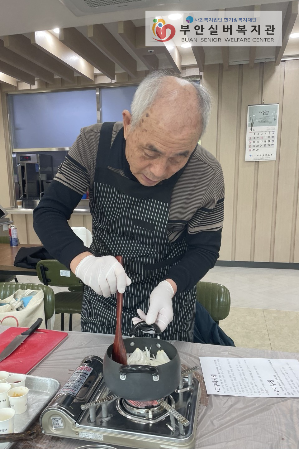꽃할배요리교실 8기 수료식이 진행되었습니다. 03.07.(목)~ 04.25.(목)까지 매주 목요일 15시에 8회기에 걸쳐 진행되었습니다.  요리교실을 제안했을 때 "남자가 무슨 요리야!" 이렇게 거부하셨던 어르신들이 이번에는 "나, 이번에도 참석하면 안 될까?" 하며 먼저 찾아오셨습니다.