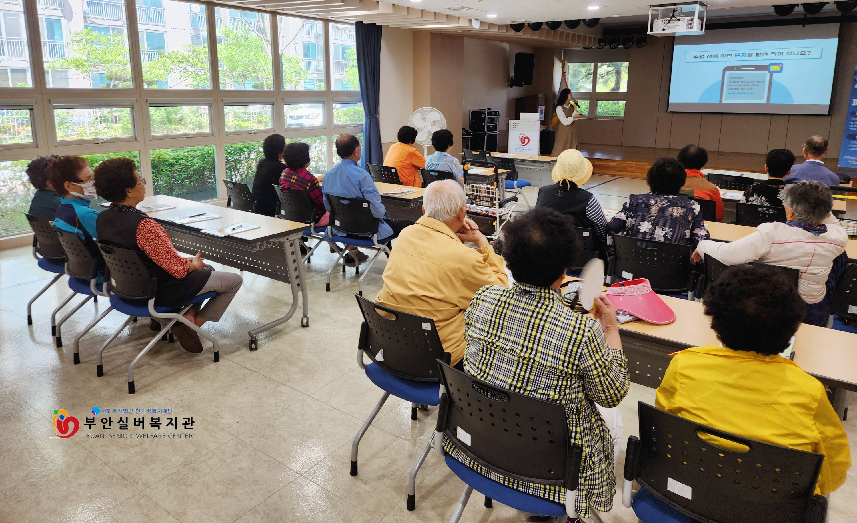 부안실버복지관에서는 어르신의 권익증진을 위해 소비자피해(보이스피싱) 예방을 굿네이버스와 연계하여 교육을 지난 5월 3일에 진행했습니다.