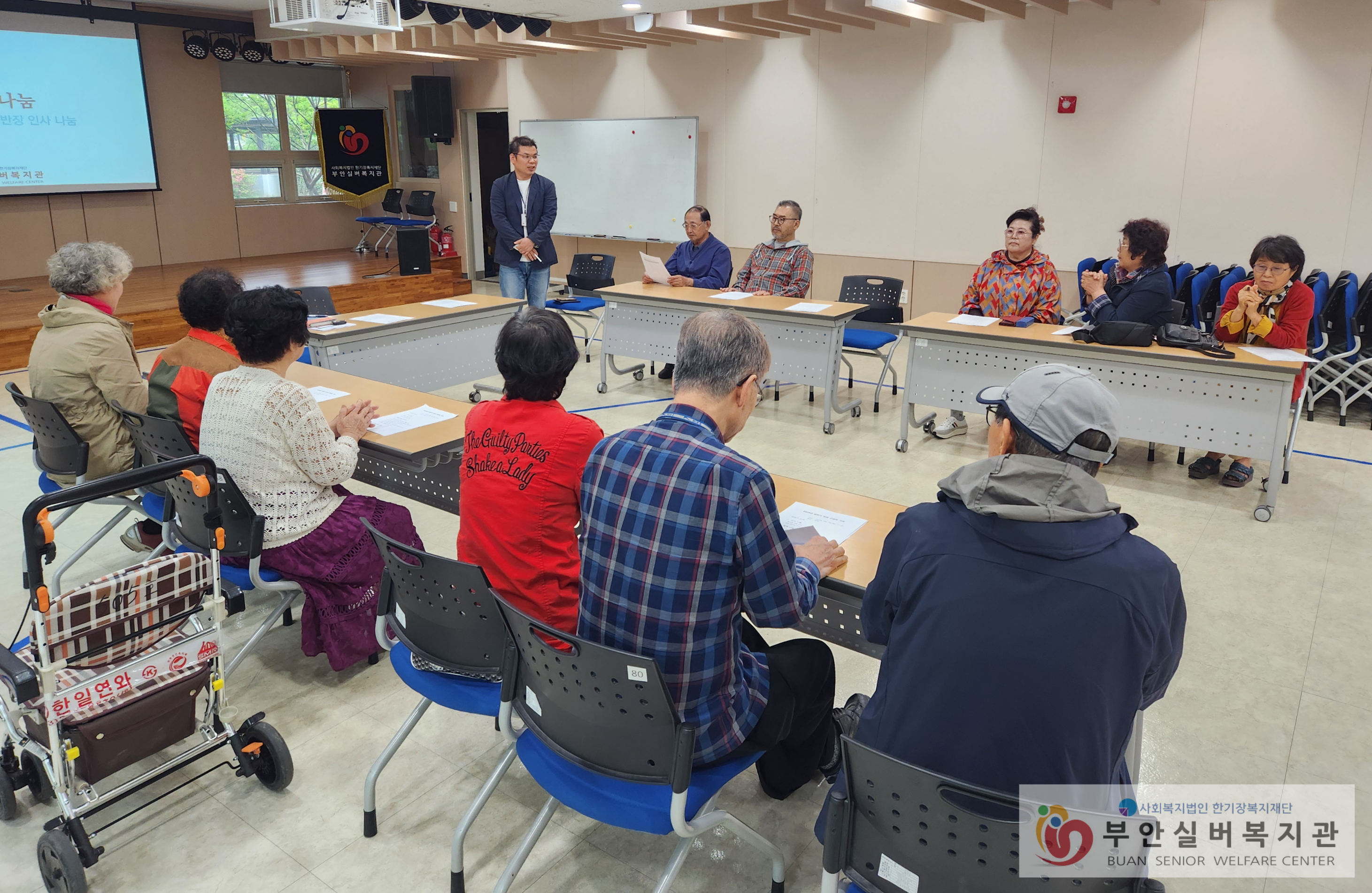 부안실버복지관은 어르신들의 이야기에 더 귀 기울이며, 당사자와 함께 만들어가는 복지관 되도록 더 노력하겠습니다.