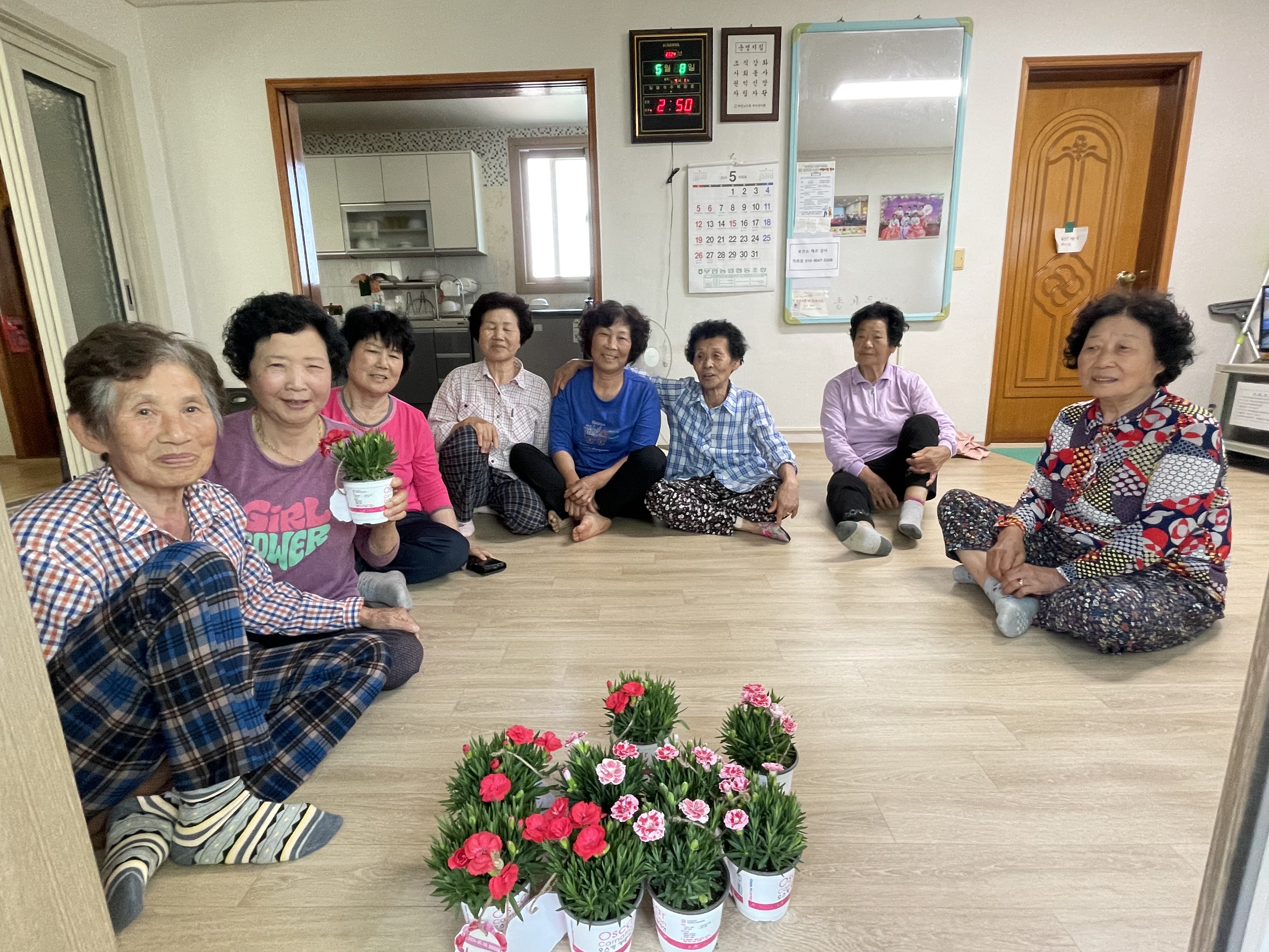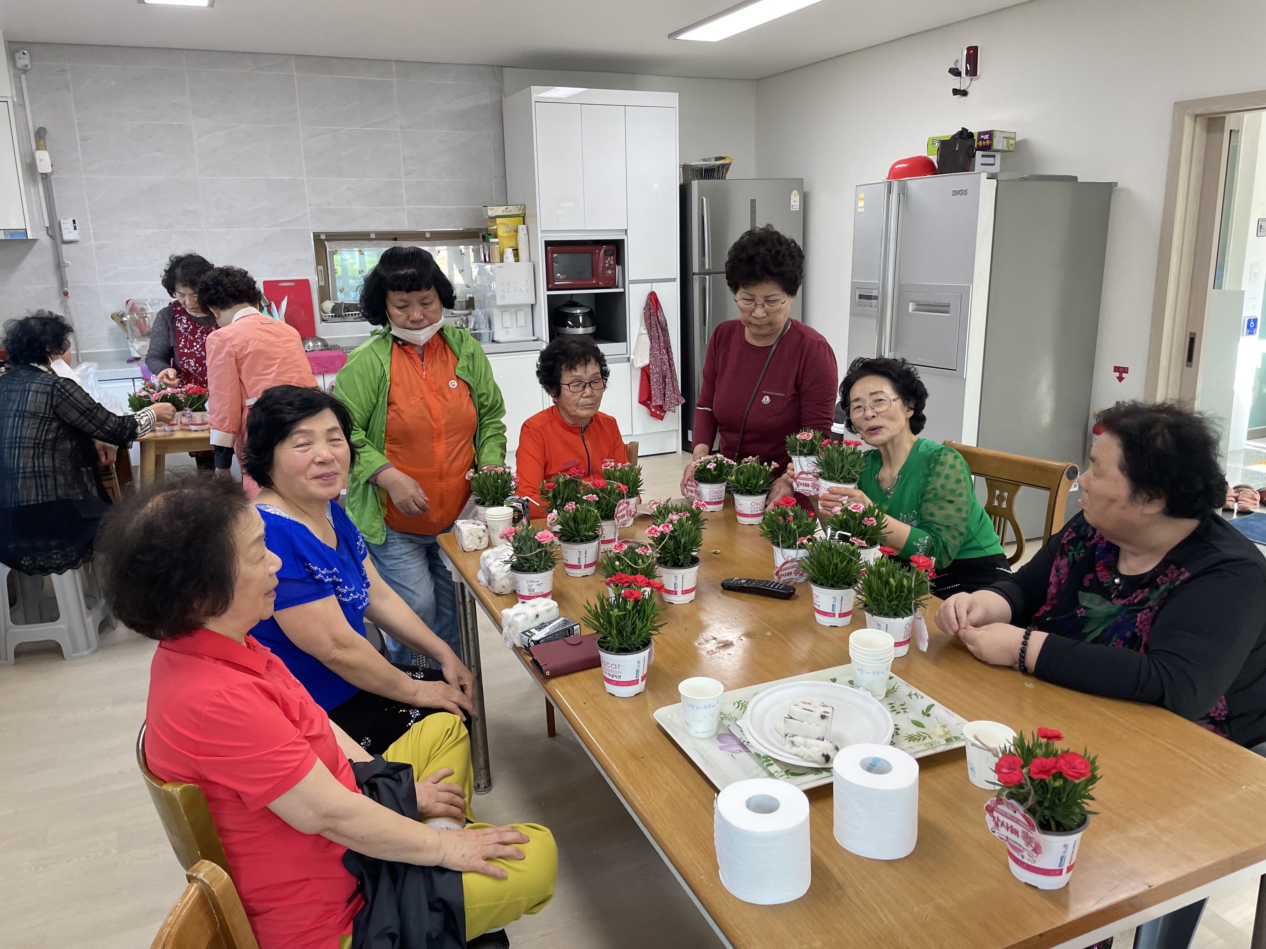 부안실버복지관은 노인복지관연계사업에 참여하시는 10개 경로당 200여명의 어르신들도 찾아뵙고 카네이션을 전달하며 감사의 마음을 전했습니다. 한편, 이번 어버이날 행사를 위해 매창식물원, 부안봉덕공공실버주택관리소가 카네이션과 과일을 후원하여 더욱 넉넉한 시간이 되었습니다.