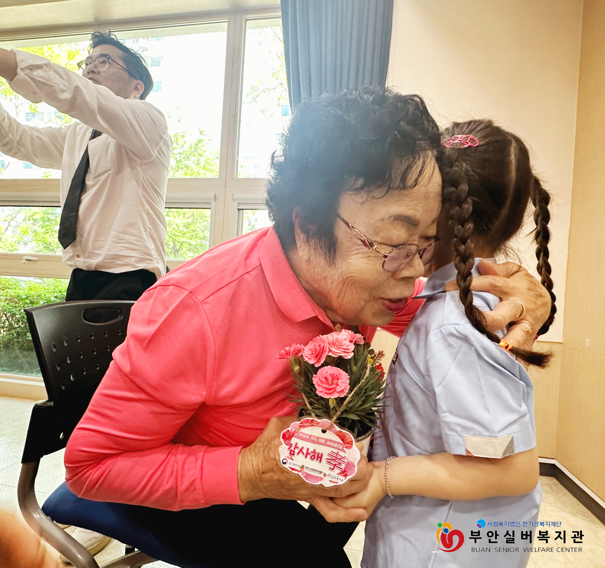 부안실버복지관은 어버이날을 맞아 복지관 이용 어르신들에게 감사의 마음을 전하는 ‘감사해孝’ 행사를 진행했습니다. 기념행사에는 알파벳어린이집 어린이들이 함께해 훈훈한 시간이 되었는데요, 어린이들은 축하공연으로 국악 동요를 불러 어르신들의 큰 박수를 받았습니다. 공연을 마치고 난 후에는 어르신들에게 일일이 카네이션 꽃을 드리며 감사하는 마음을 전했습니다. 꽃을 전해 받은 어르신들은 아이들과 눈을 맞추며 '예쁘다, 귀엽다, 고맙다'는 말을 아끼지 않으셨습니다.