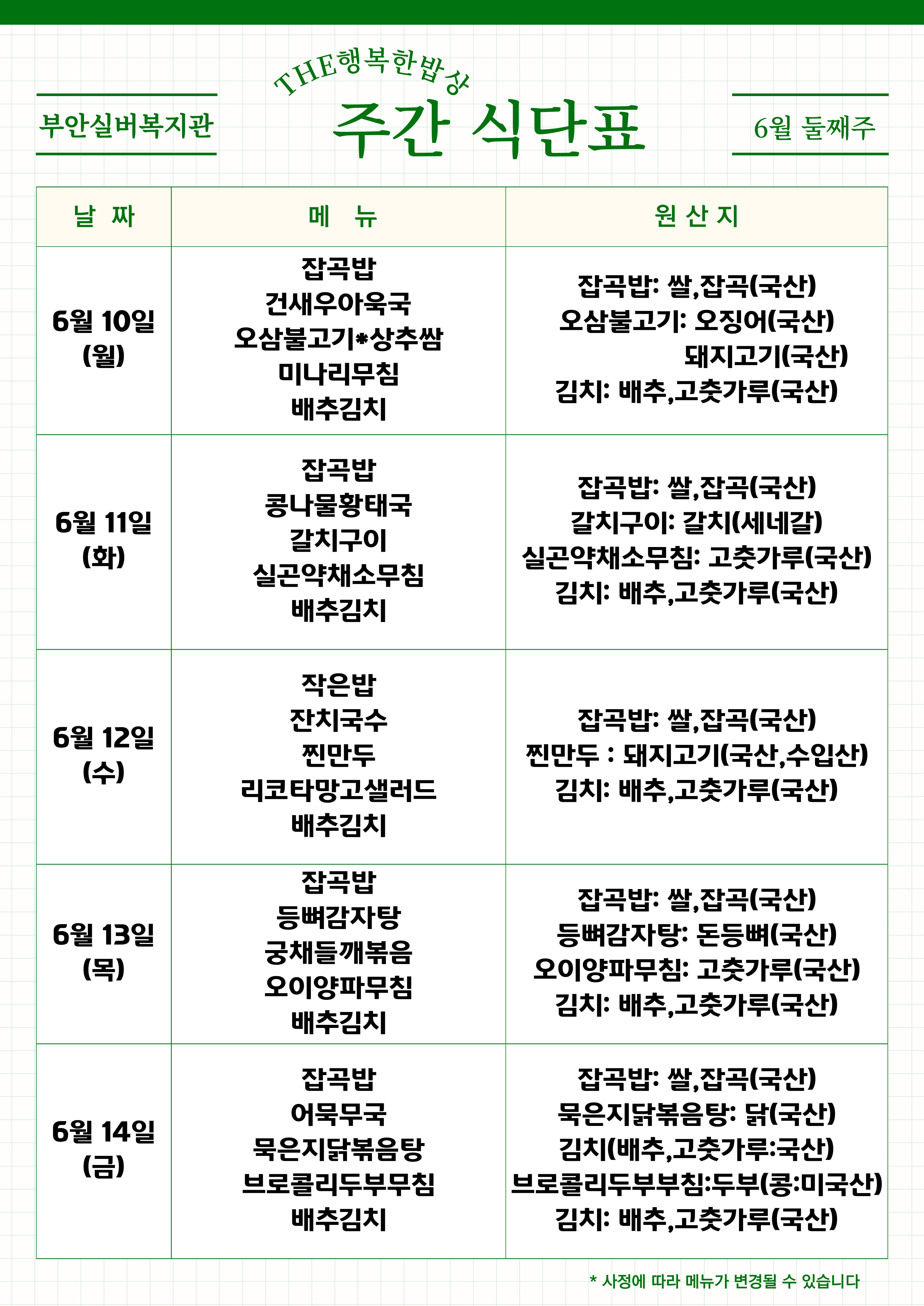 | 복지관 식단표 - 6월 1주 (0) | 2024.05.31 |