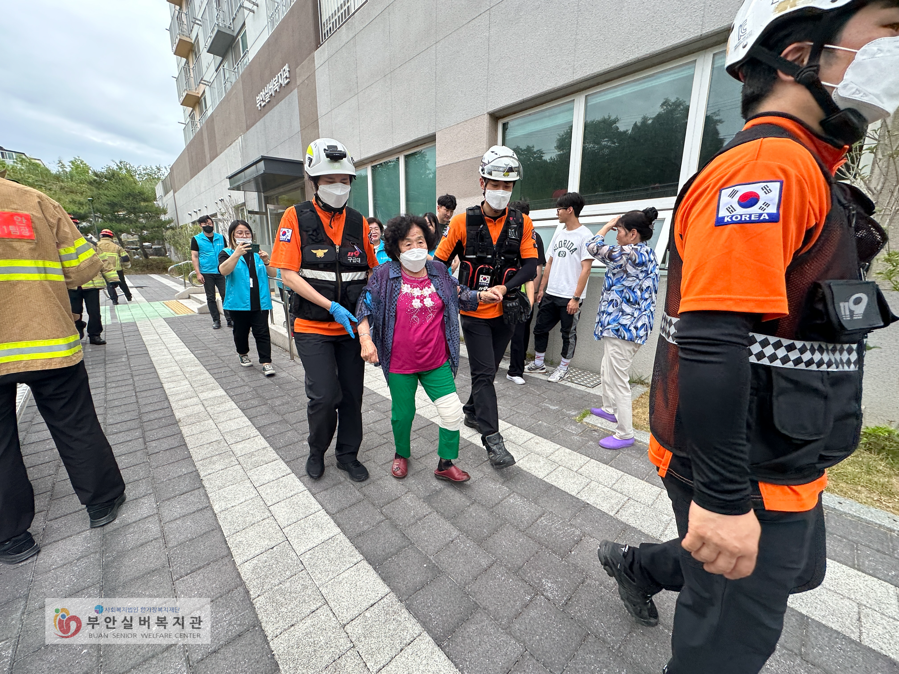 훈련이 종료된 후, 어르신들은 각 층별 대피로 및 궁금한 점, 소화기 사용법 등에 대해 질의응답 시간을 가졌습니다. 훈련에 협조해주신 부안소방서 대원들과 참여해주신 어르신들께 감사의 말씀을 전합니다.