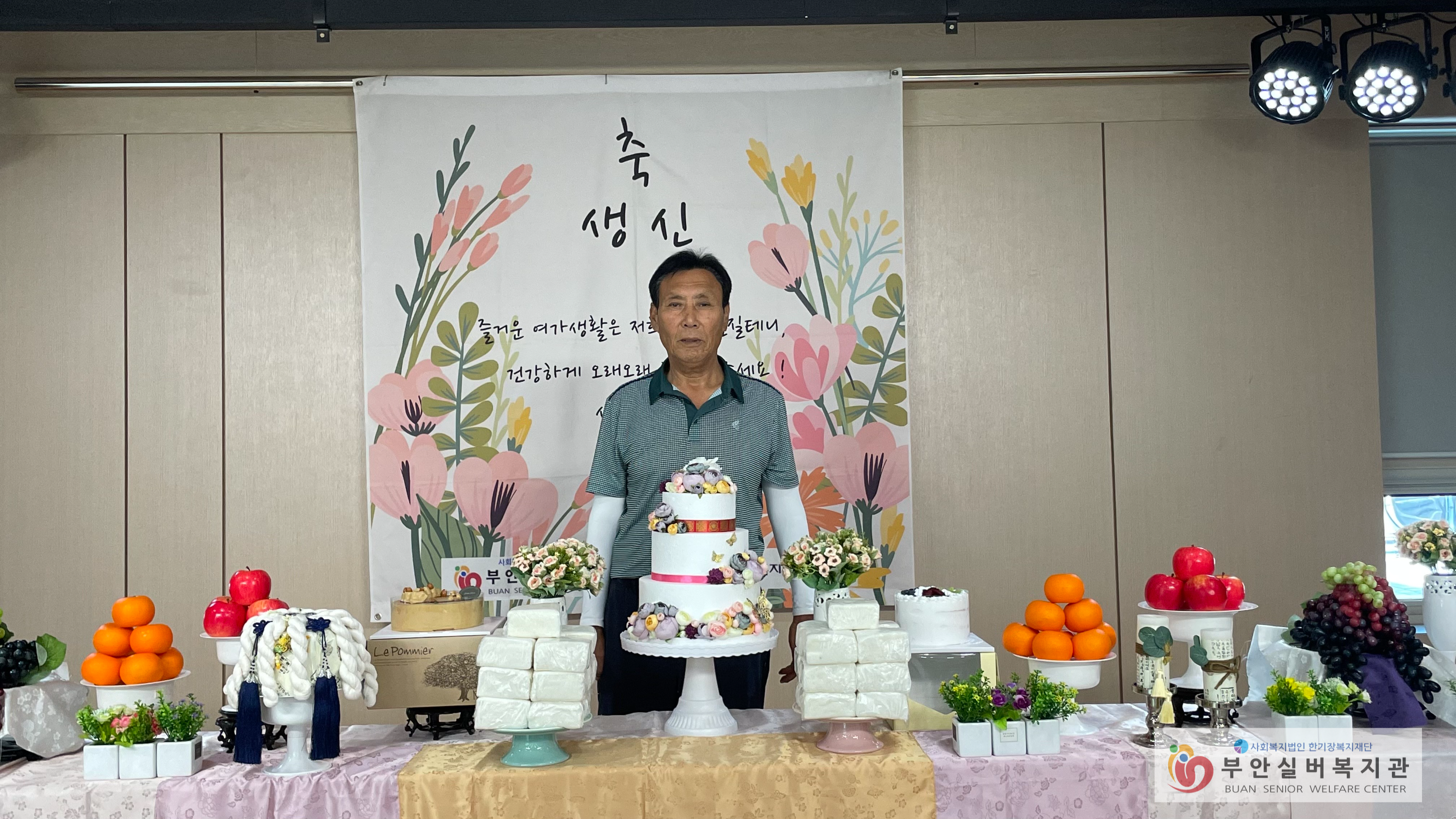 2024년 두번째 생신잔치가 지난 6월28일 부안실버복지관 강당에서 열렸습니다. 분기별로 진행되어 생신이 이미 지난 분들이 대부분이었으나, 한분 한분 일어나 축하하러 참석한 어르신들에게 진심을 담아 감사한 마음을 이야기 하였습니다.