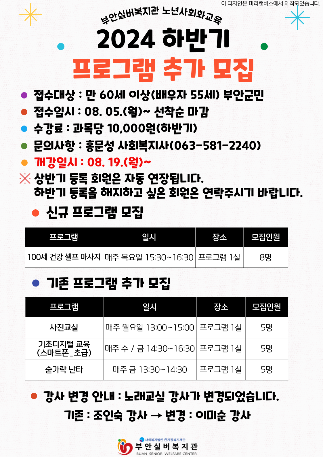 | 부안실버복지관 '행복 나눔 장터'에 초청합니다. (0) | 2024.08.07 |