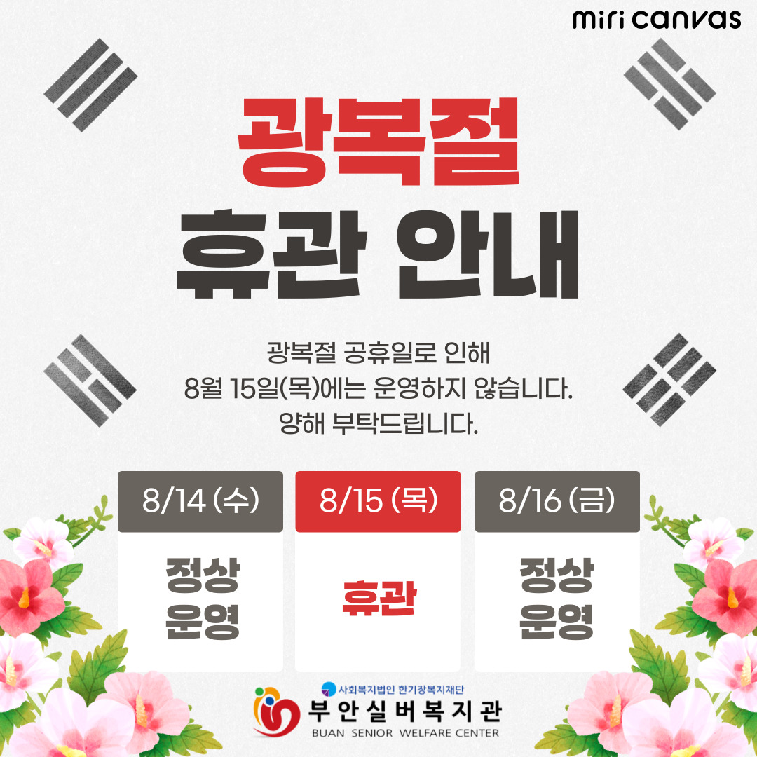 복지관 휴관 안내_광복절