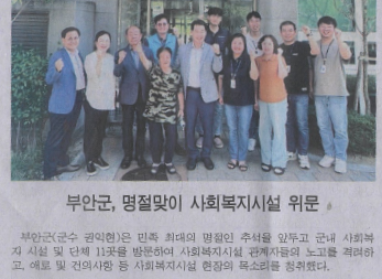 부안군(군수 권익현)은 지난 4일 민족 최대의 명절인 추석을 앞두고 관내 사회복지 시설과 단체 11곳을 방문하여 사회복지시설 관계자들의 노고를 격려하고, 애로 및 건의사항 등 사회복지시설