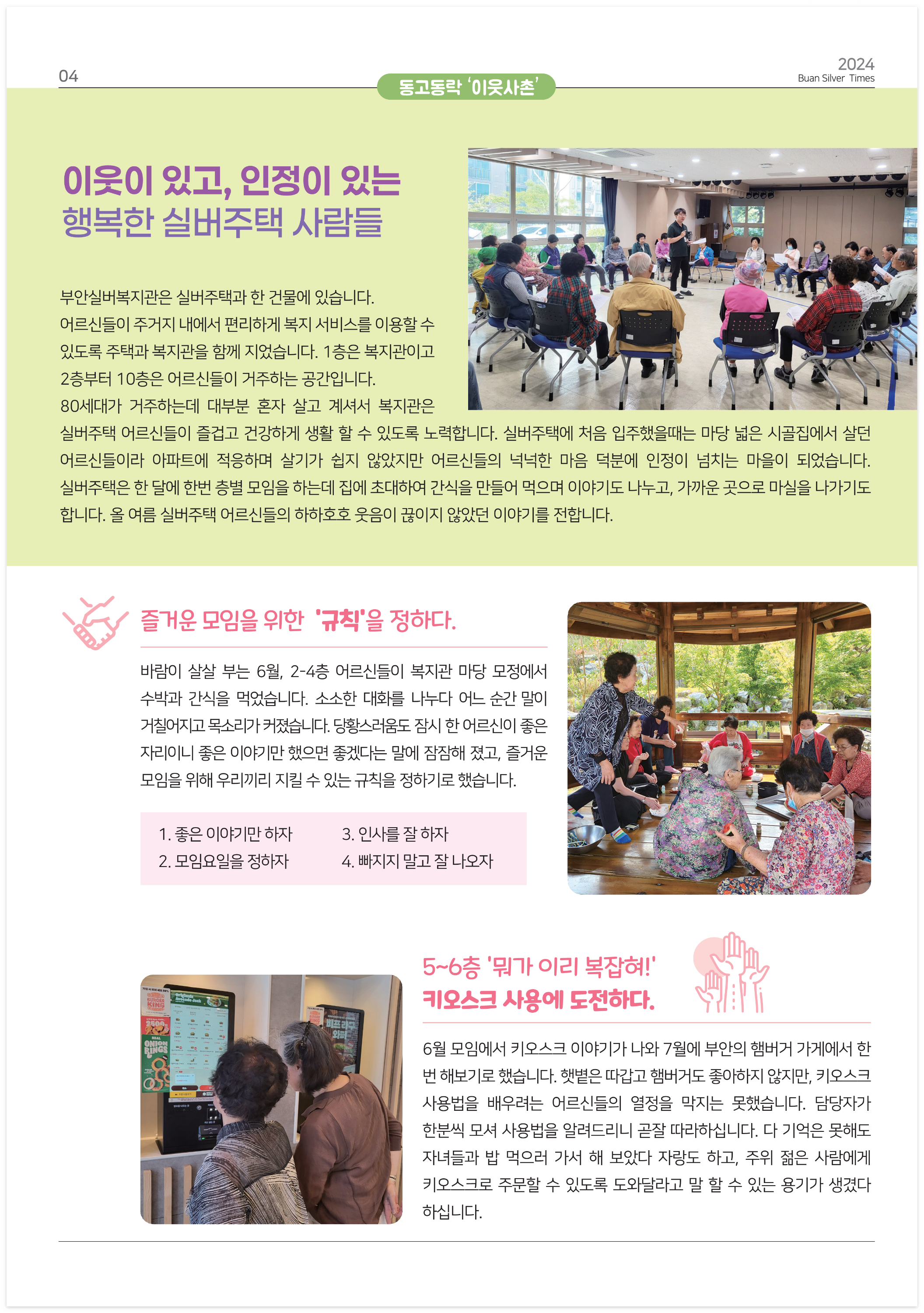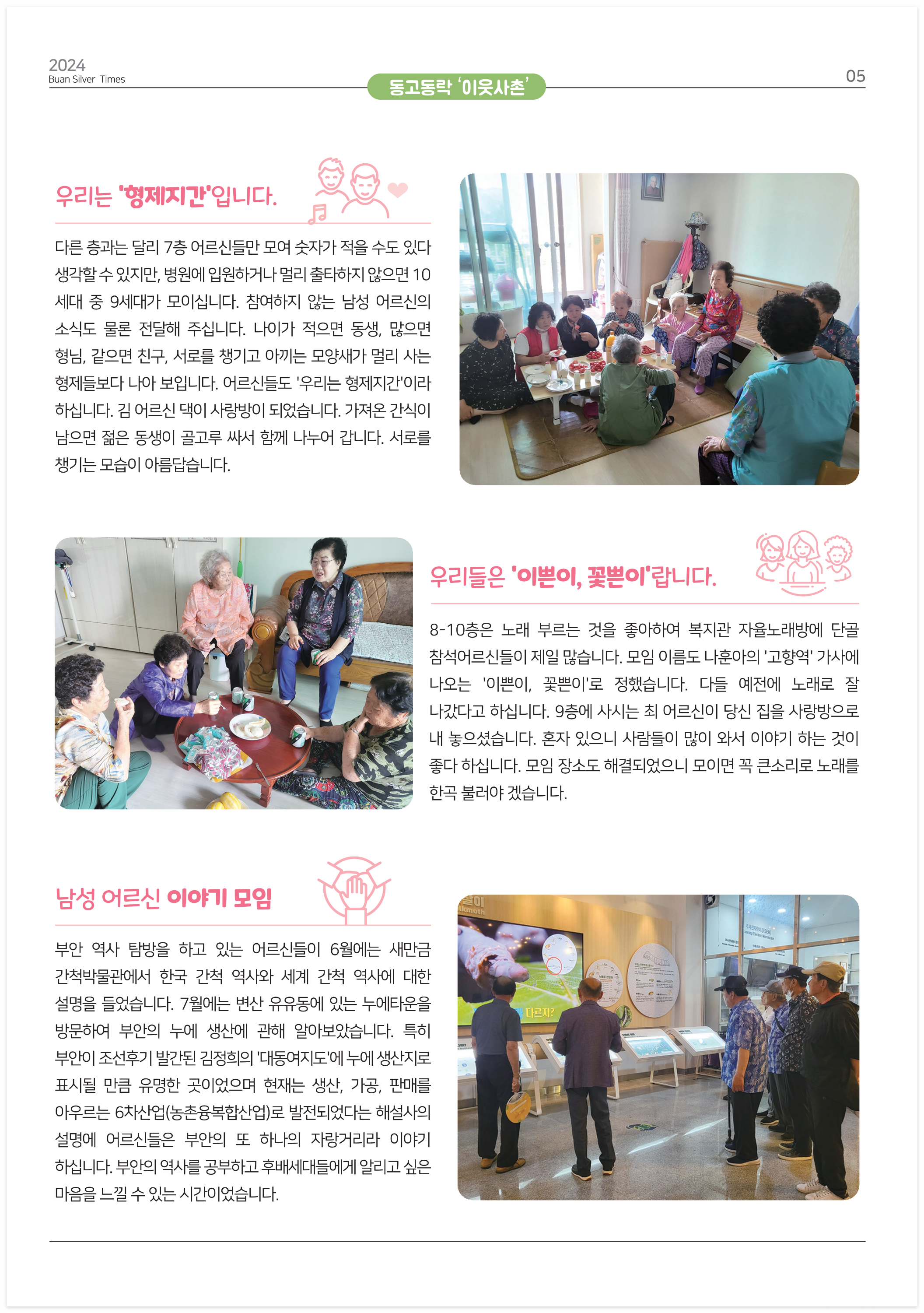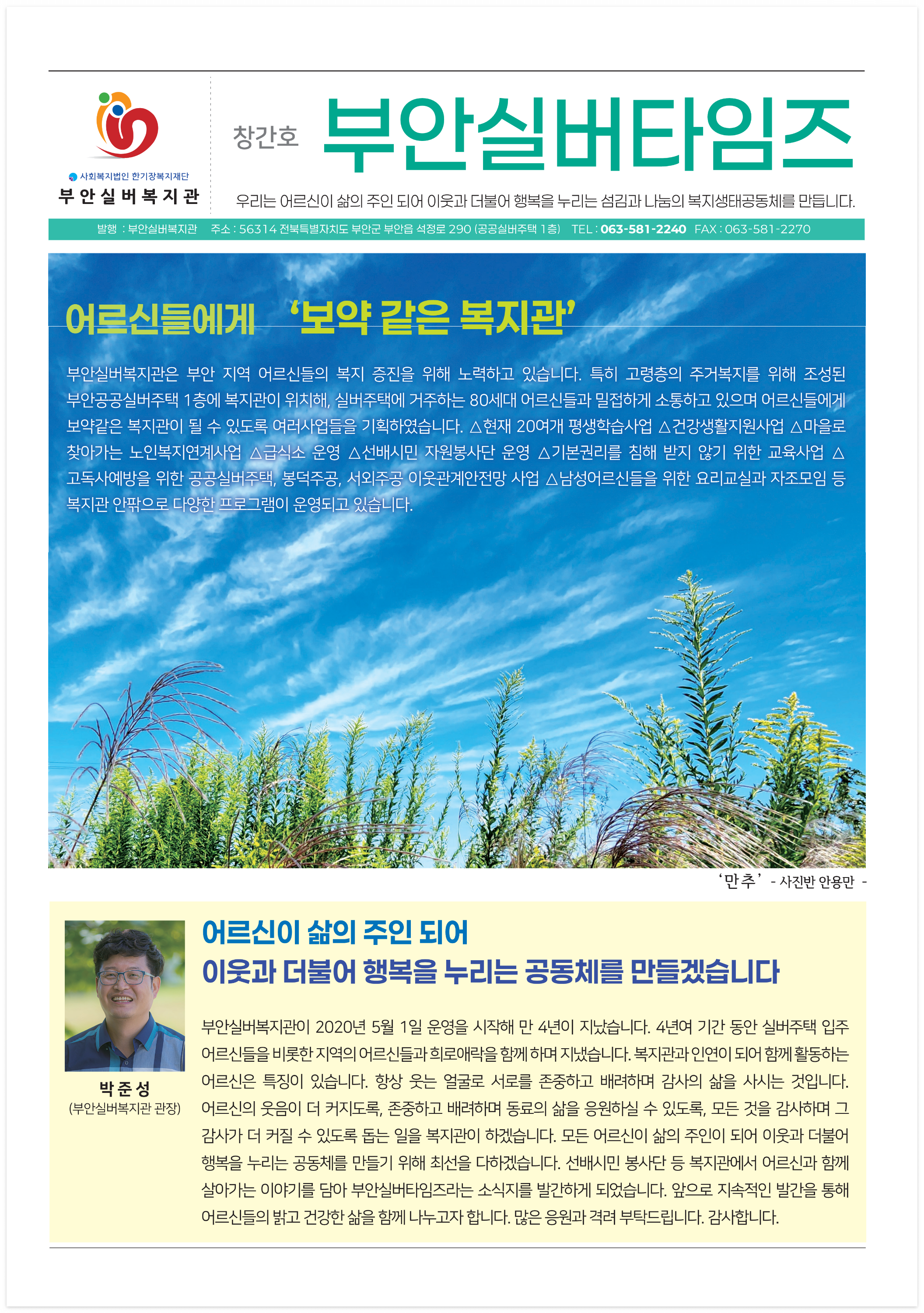 부안실버복지관이 '부안실버타임즈' 이름으로 소식지를 발간합니다.