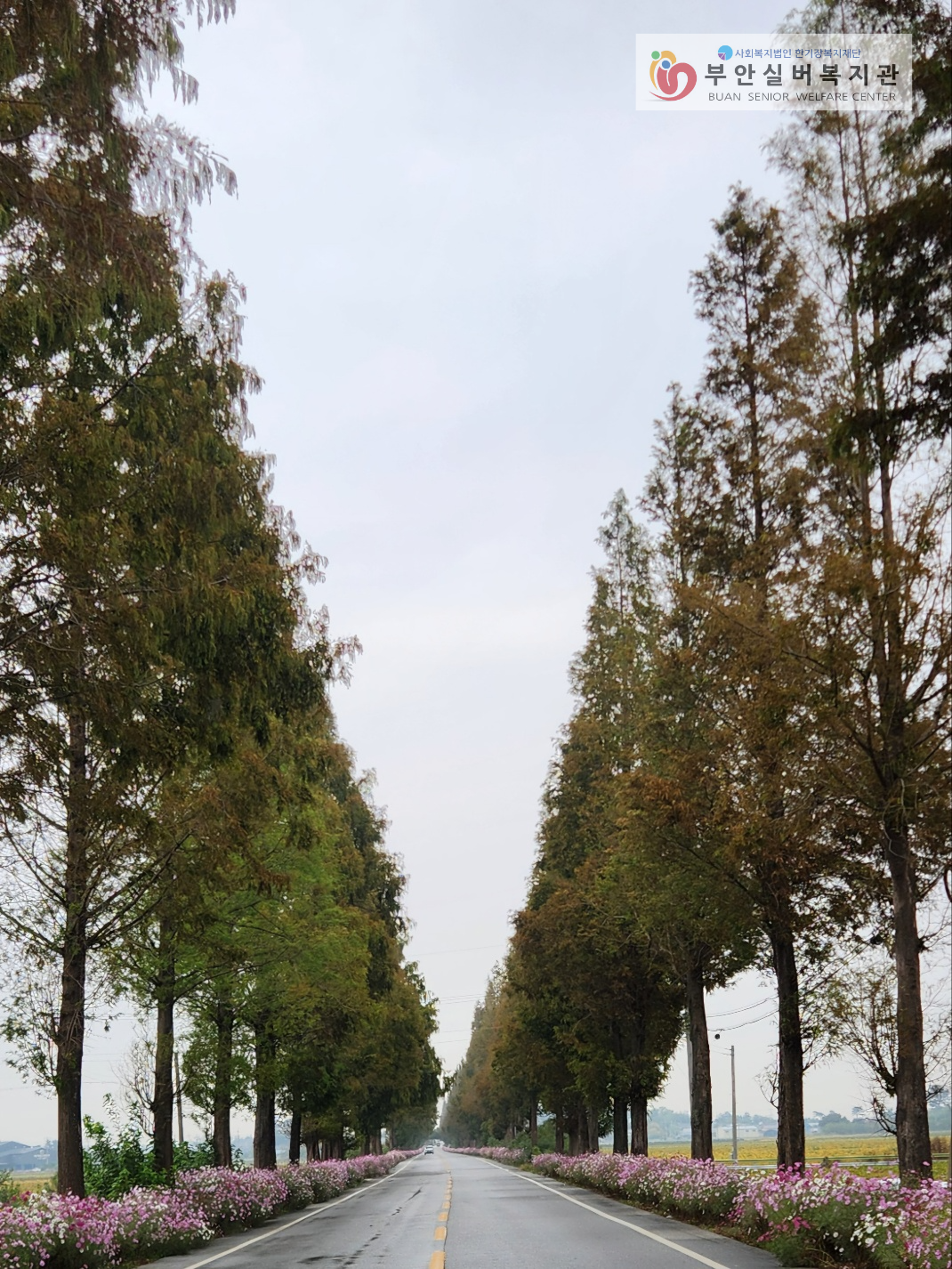 10월 수업으로 김제 메타세콰이어 길망해사에 다녀왔습니다! 김제 메타세콰이어 길은 연중 큰 나무들이 장관을 이루지만, 이 시기에 가면 코스모스가 나무 사이사이를 메워서 아는 사람만 아는 예쁜 명소입니다. 어르신들은 날씨가 흐려서 걱정하셨지만, 메타세콰이어 나무와 만개한 코스모스를 보며 "그래도 오길 잘했다."라고 이야기하며 사진촬영을 하셨습니다.