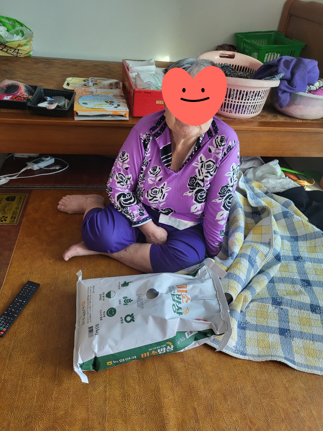 쌀을 전달받은 이00님은 "고맙다"라고만 하셨지만, 치매와 신체장애가 있는 이00님을 도와드리고 있는 요양보호사가 "평소 식사량이 많아 기초생활수급자에게 나오는 쌀이 항상 부족하여 어려움이 많았다"며 " 어르신의 마음을 대신 전하여 주었습니다. 유00님은 "햅쌀을 살 생각도 하지 못하고 있었는데 맛 좋은 밥을 먹게 해주어 고맙다 "라며 감사의 마음을 표현하였습니다.