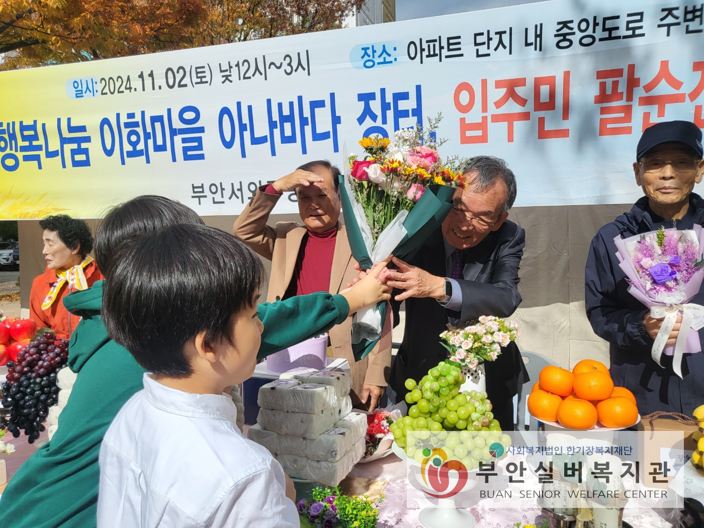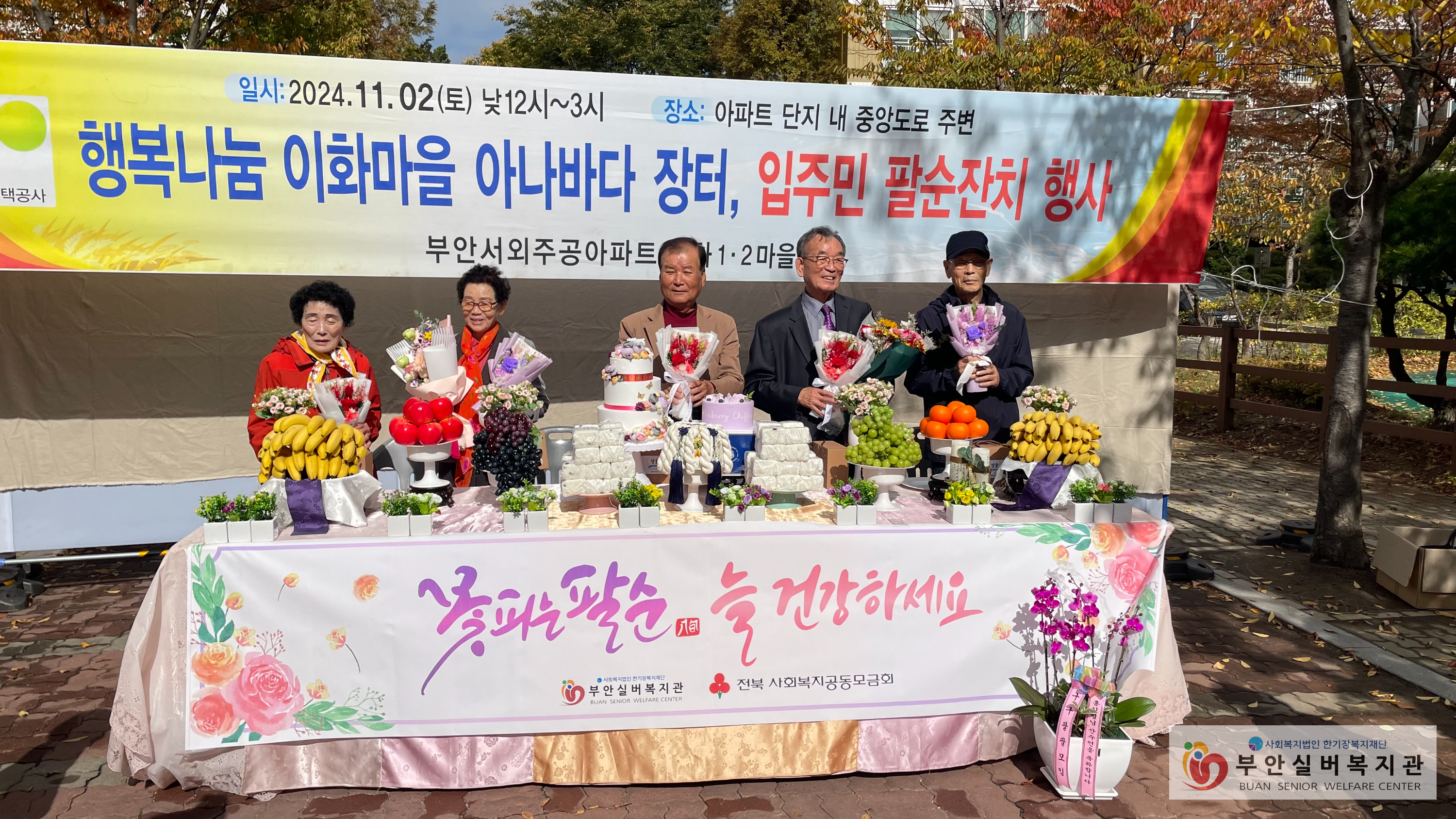 지난 11월 2일, 부안서외주공아파트 1,2마을 & 부안서외LH주거행복지원센터와 함께 한 이웃관계안전망사업 거점지역 서외주공아파트에서 열린 팔순 잔치는 어르신들의 삶을 축하하고, 이웃 간의 따뜻한 관계를 확인할 수 있는 특별한 잔치였습니다. 이번 잔치는 고독사 예방을 위한 이웃 관계 안전망 사업의 일환으로 진행되었으며, 아파트 내 팔순을 맞이한 어르신들에게 큰 기쁨과 따뜻한 기억을 선물한 시간이었습니다.