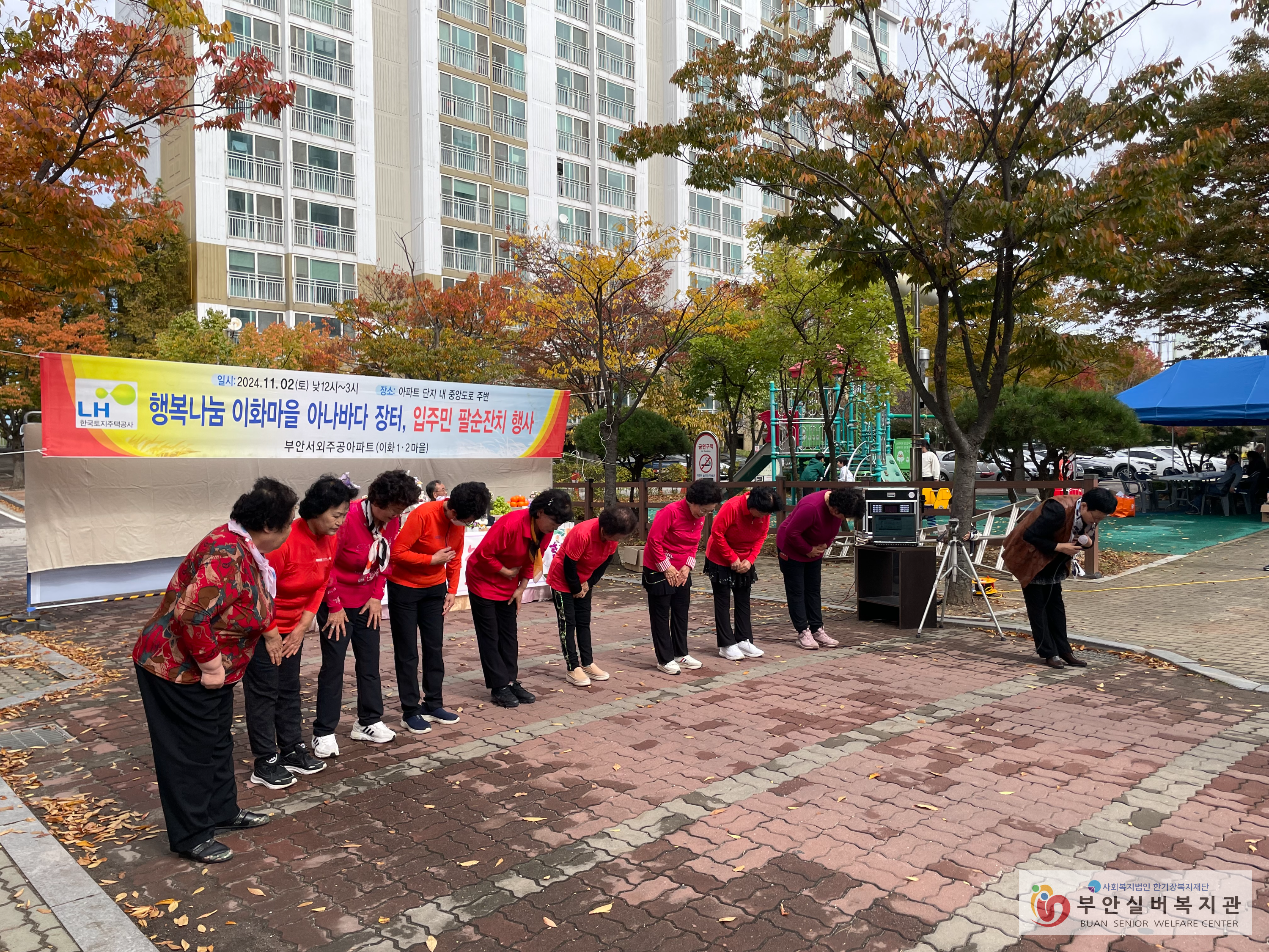 지난 11월 2일, 부안서외주공아파트 1,2마을 & 부안서외LH주거행복지원센터와 함께 한 이웃관계안전망사업 거점지역 서외주공아파트에서 열린 팔순 잔치는 어르신들의 삶을 축하하고, 이웃 간의 따뜻한 관계를 확인할 수 있는 특별한 잔치였습니다. 이번 잔치는 고독사 예방을 위한 이웃 관계 안전망 사업의 일환으로 진행되었으며, 아파트 내 팔순을 맞이한 어르신들에게 큰 기쁨과 따뜻한 기억을 선물한 시간이었습니다.