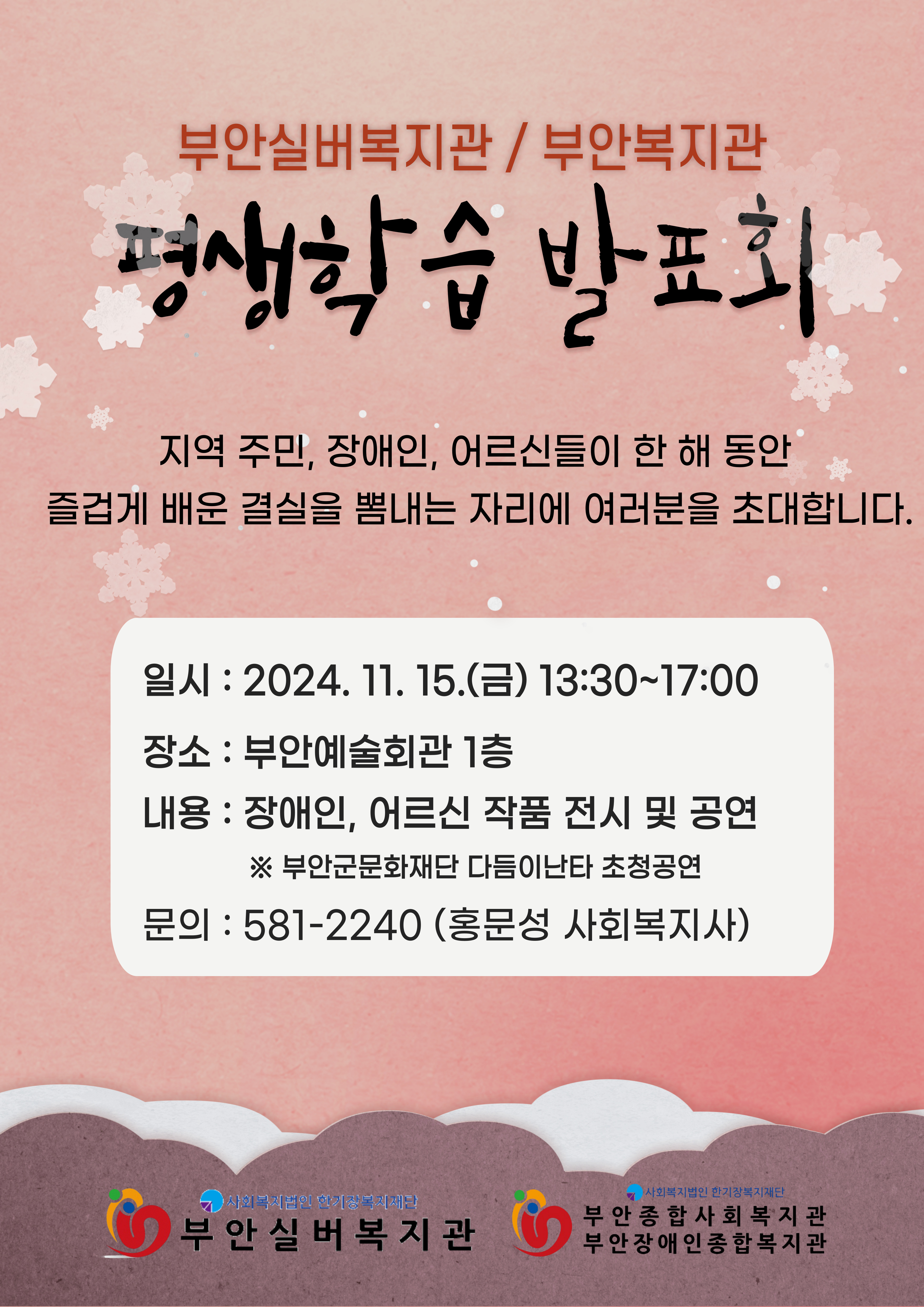 2024년 부안실버복지관과 부안복지관이 함께 하는 평생학습 발표회에 초대합니다.