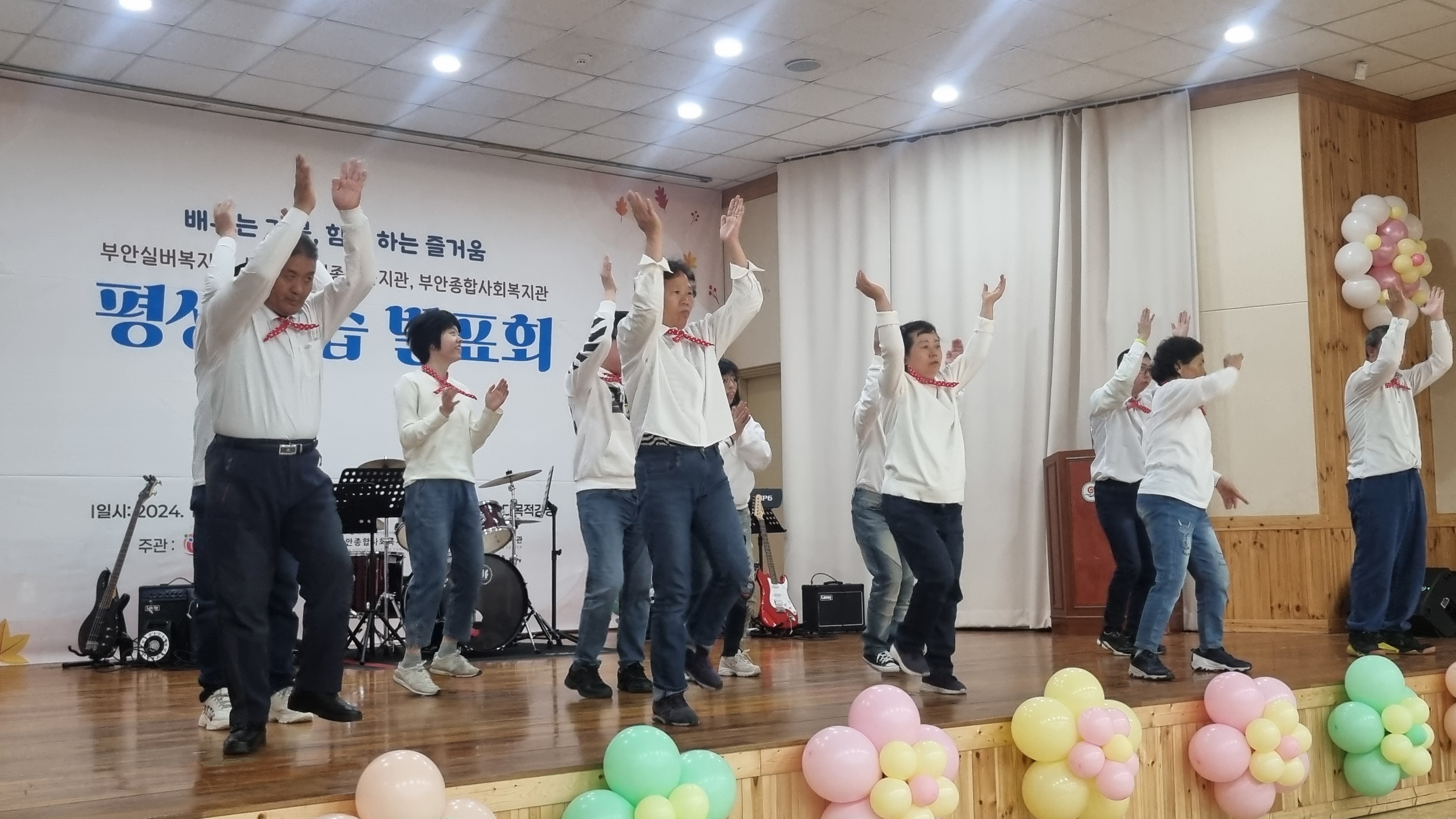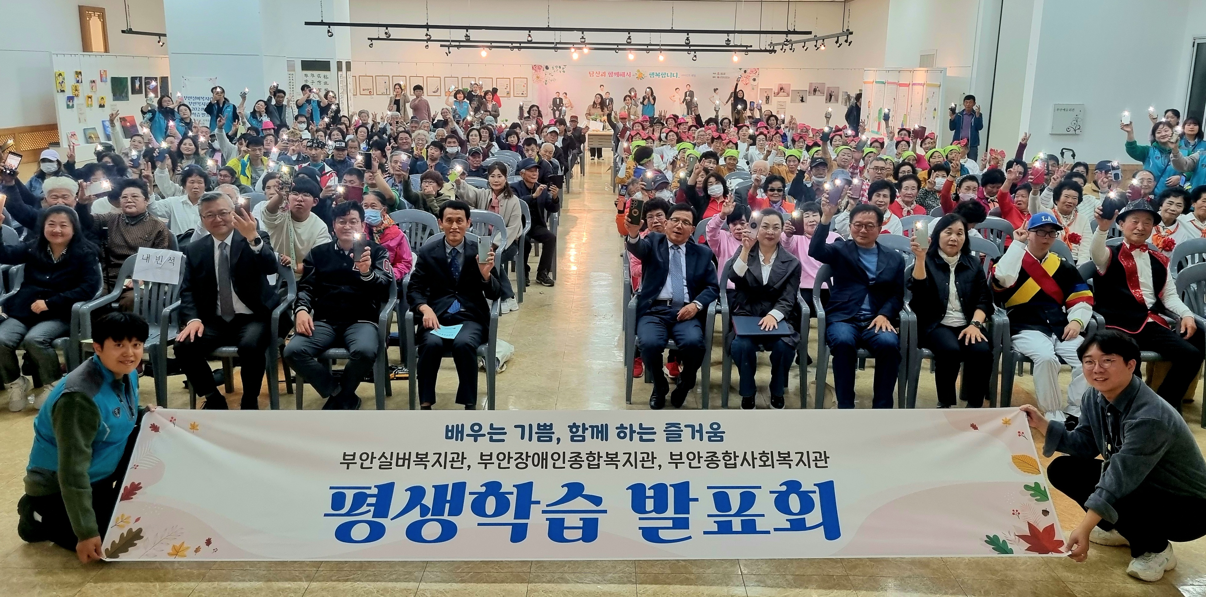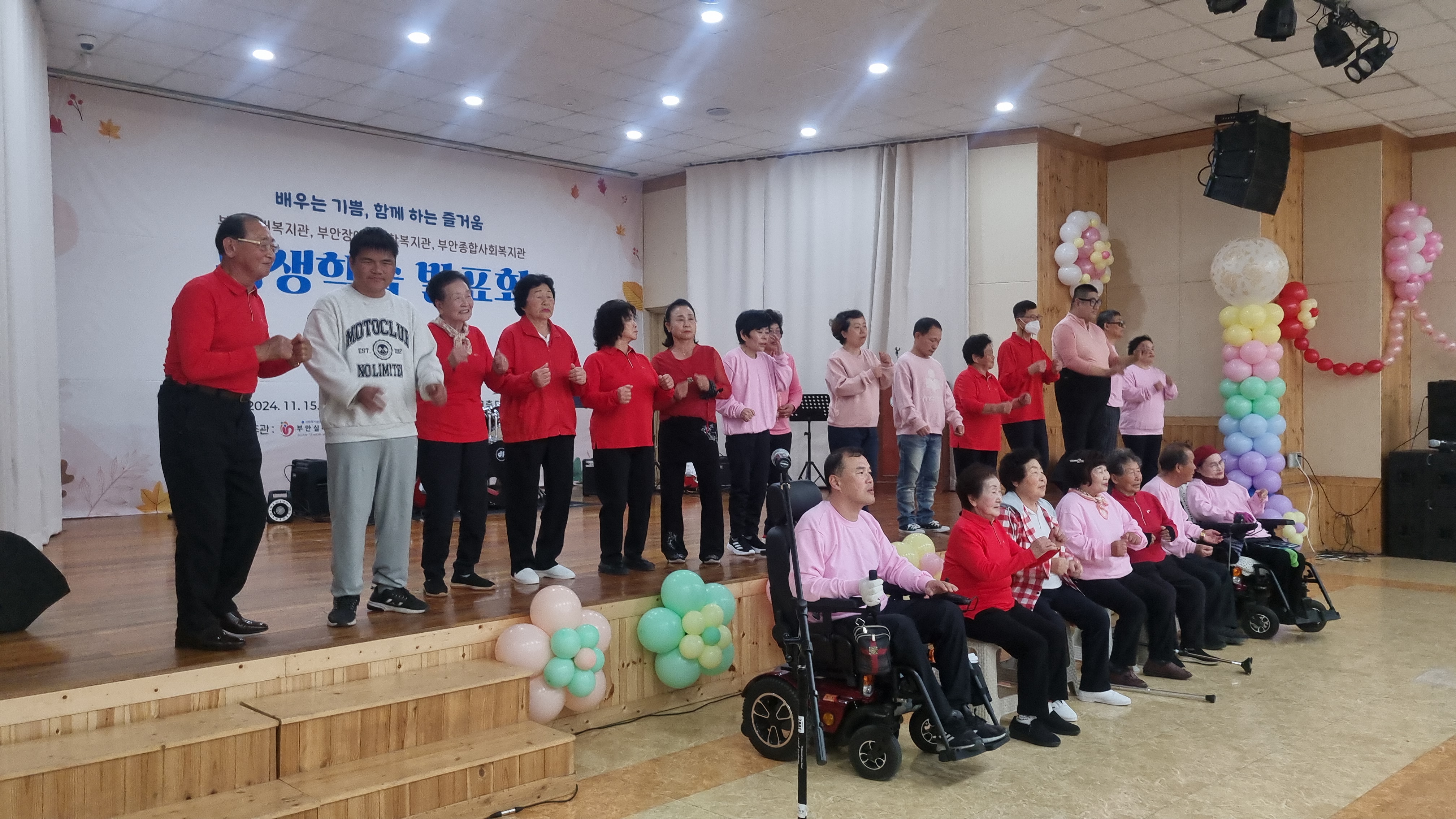 부안실버복지관 - 부안복지관이 공동으로 주관하여 '배우는 기쁨, 함께 하는 즐거움 2024년 평생학습 발표회'를 11월 15일 250명의 지역 주민, 장애인, 어르신과 내빈이 참여한 가운데 진행하였습니다.