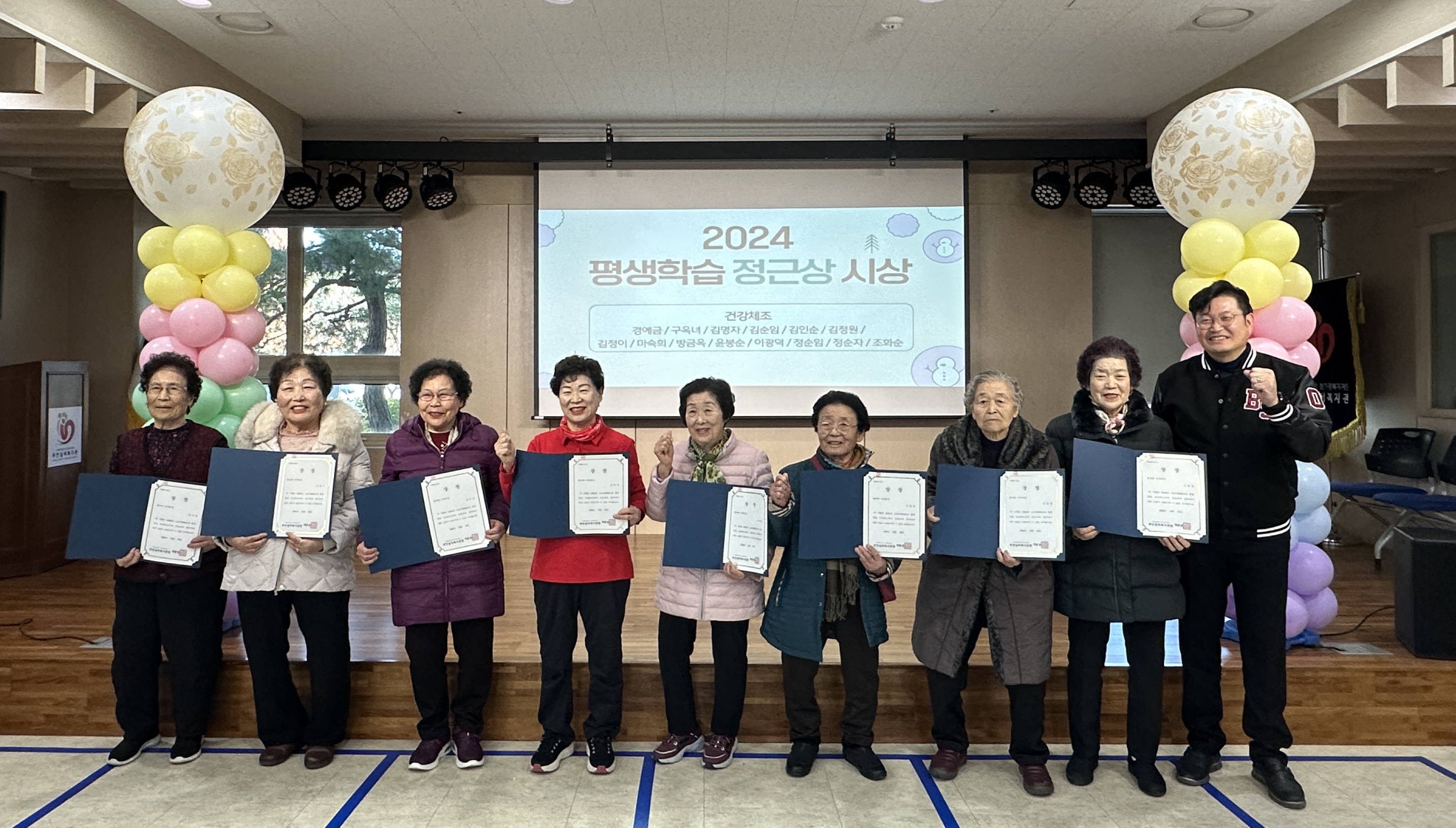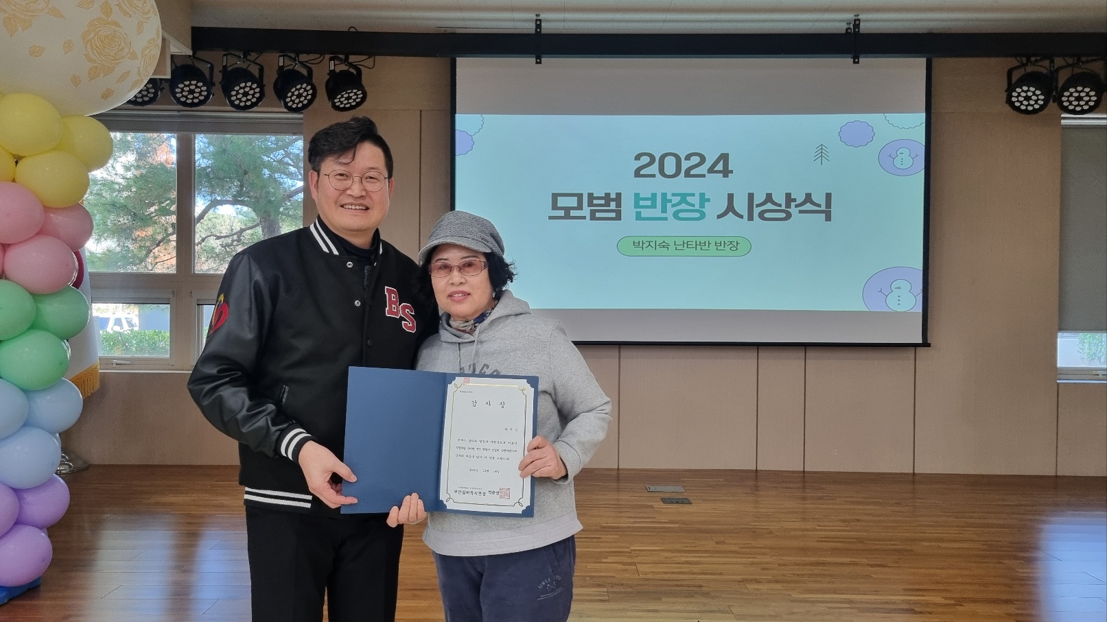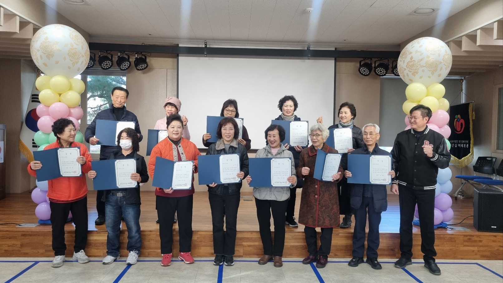 부안실버복지관에서는 2024년 노년사회화교육 평생학습 종강식을 지난 6일 복지관 강당에서 진행했습니다. 이번 종강식에서는 한 해 동안 평생학습 사업이 원활하게 운영될 수 있도록 도움을 준 모범 강사와 반장에게 감사장을 전달하고, 참여 어르신들에게는 개근상과 정근상을 수여하는 시간을 가졌습니다.