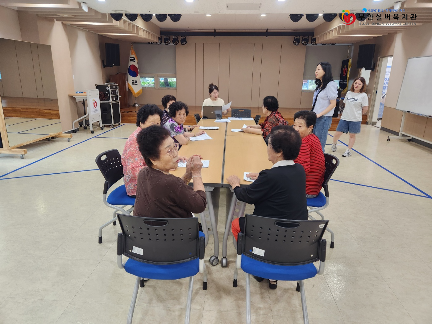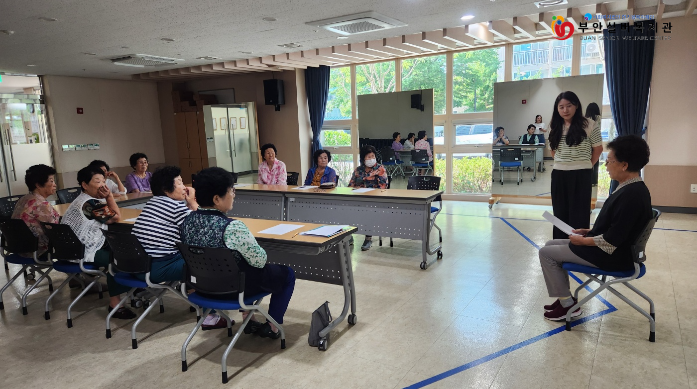 부안실버복지관에서는 부안군문화재단과 연계하여 2024년에도 「찬란한 할미들」 연극 프로그램을 함께 진행했습니다. 2023년의 감동을 기억하고 계시는 어르신들과 함께 7월 마지막 주에 연극 프로그램의 첫 시작을 알렸습니다.