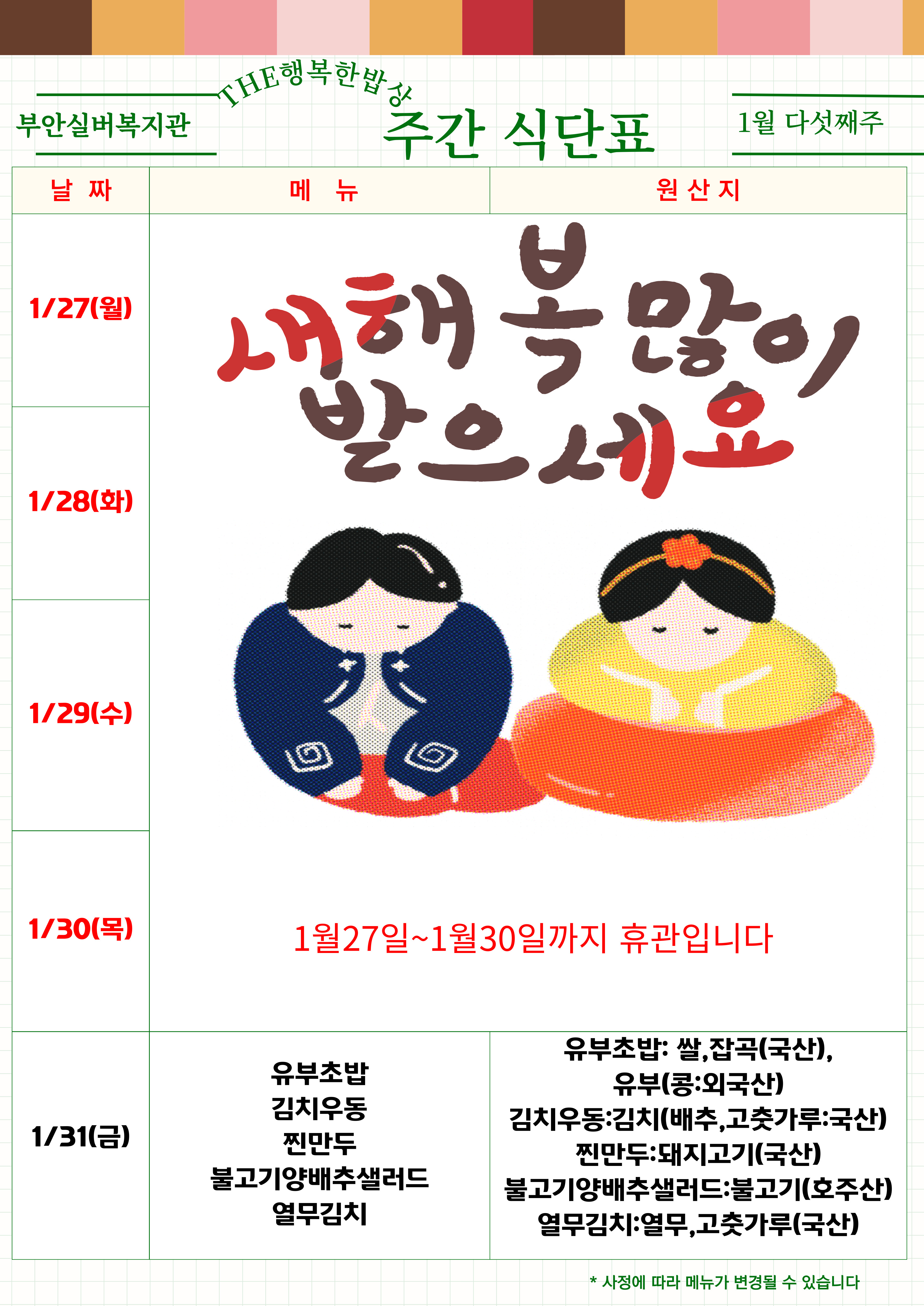 복지관 식단표 - 1월 4주