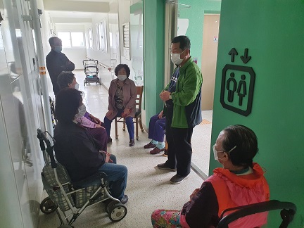 그동안 신발장 깊숙히 있었던 소화기가 신발장 밖으로 나왔습니다. "어디에 놔야 잘 써먹을까?", "거동 불편한 사람들은 걸리적 거리지 않을까요?", "누가 실버카를 집안까지 들여놔!, 문 앞에 두고 들어가지!", "여기가 제일 좋겠어", 어르신들과 이런저런 이야기를 나누고 방법을 어르신들의 입장에서 생각해 볼 수 있는 좋은 시간이었습니다.