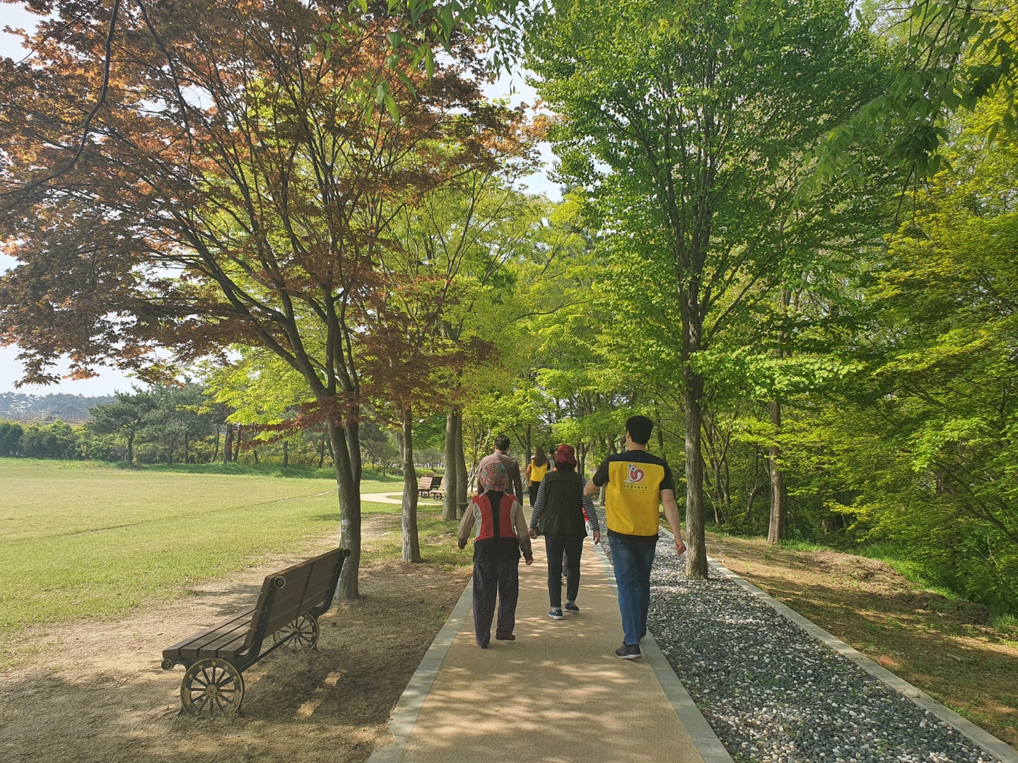 실버카와 지팡이를 준비해 오신 어르신들도 잠시 옆에 내려두고 같이 준비운동을 하고 천천히 출발하였습니다. 스포츠 파크는 처음 오신다는 어르신, 5바퀴를 다 걸을 수 있을까 걱정하는 어르신 등 직접 준비해온 음악을 틀어두고 걸으십니다. 서로 응원하며 발 맞춰 걸으시고, 서로의 체력에 맞춰서 같이 쉬고 또 걷고 화합하는 모습이 너무 좋았습니다. 끝나고 돌아가는 길에 다음에는 어디로 가냐고 물어보며, 읍내의 좋은 코스도 추천해주십니다. 걷기 운동 너무 좋으시다며 다음에도 꼭 참석해주신다고 하십니다.