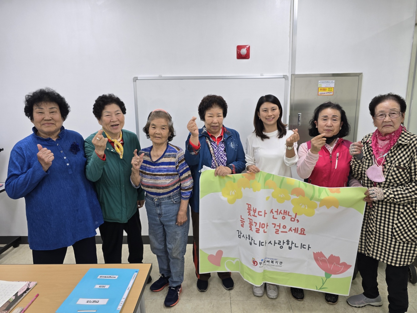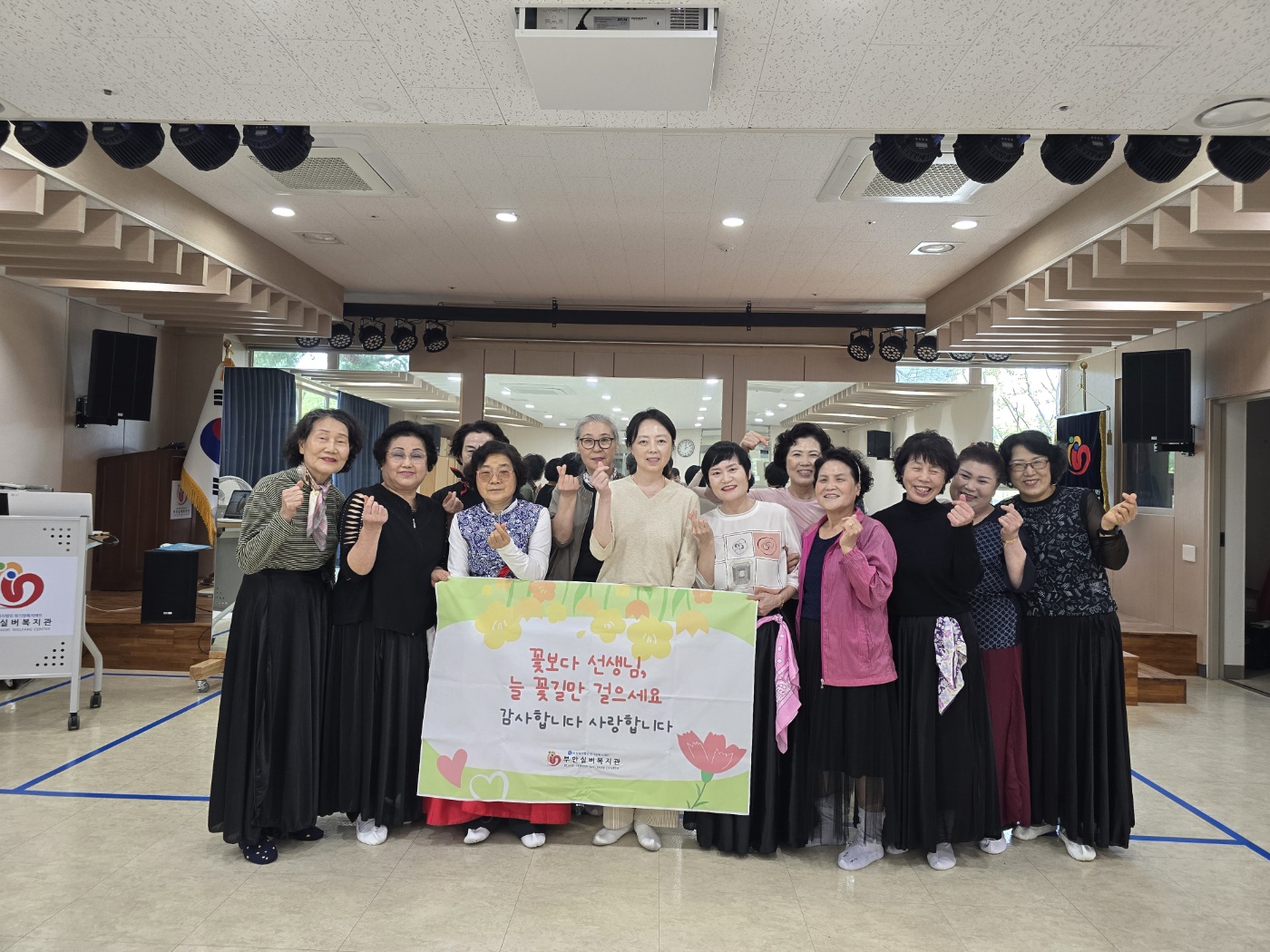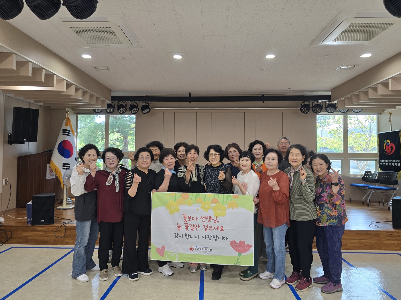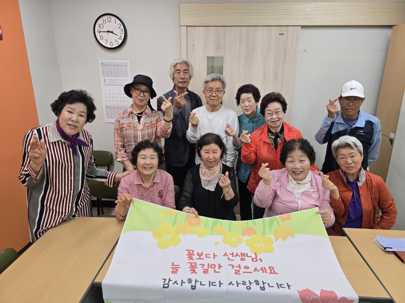 서로 칭찬하고, 격려하는 분위기 속에서 스승의 날 기념 주간을 마무리 할 수 있었습니다. 열심히 수업해주시는 강사님, 항상 웃으면서 수업 받으시는 어르신들 모두 건강한 모습으로 2025년을 보낼 수 있기를 바랍니다.