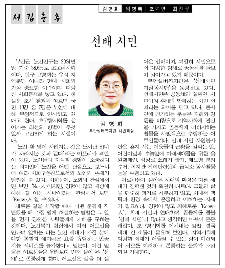서림신문 칼럼_선배시민_김병희 복지사업과장