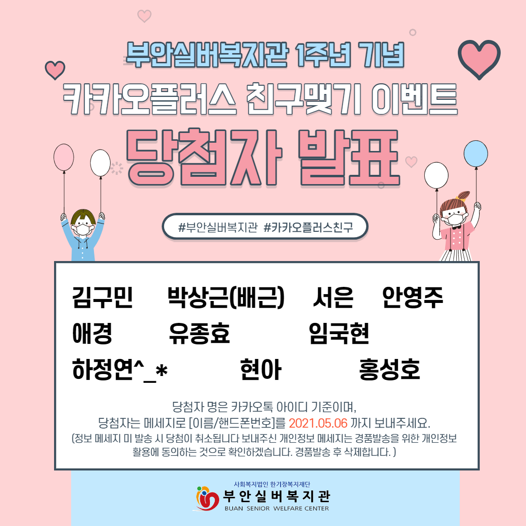 | [개관1주년기념 이벤트] 카카오톡플러스 친구 추가 (0) | 2021.04.29 |
