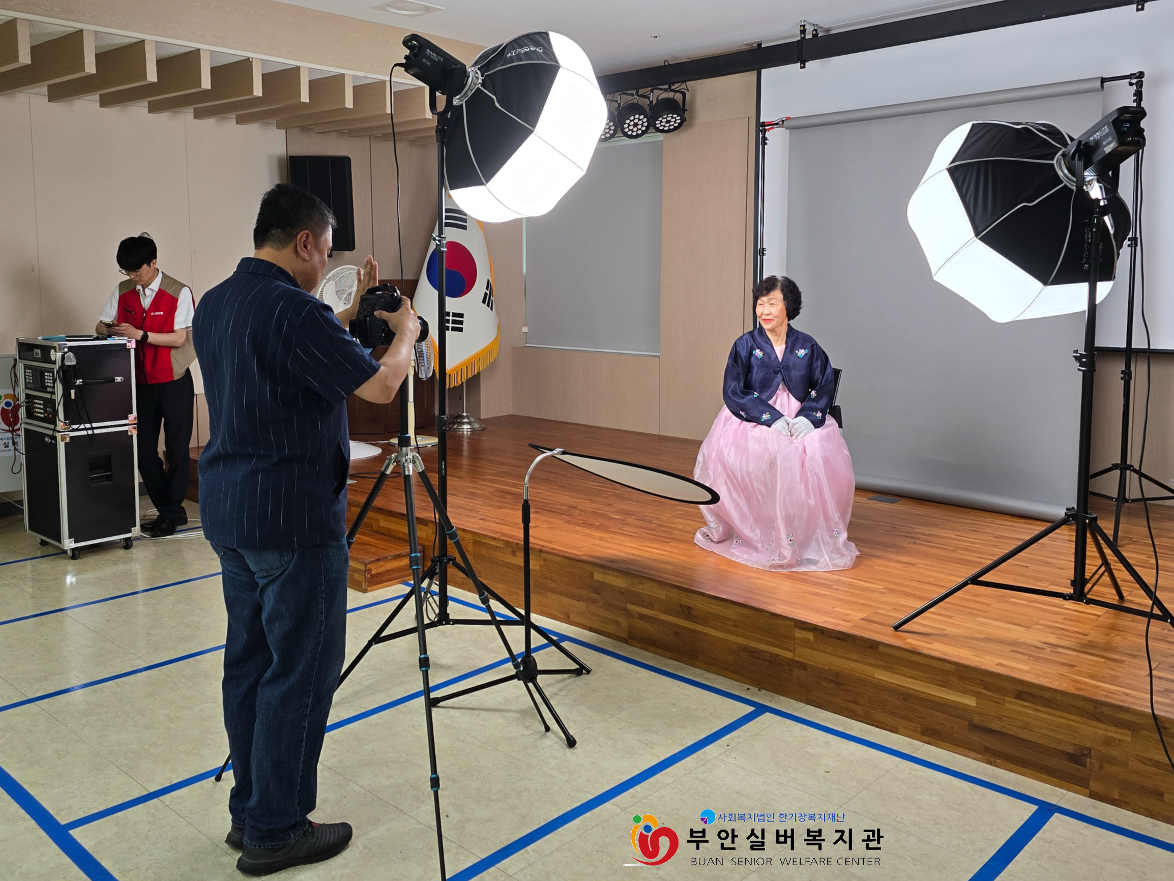부안실버복지관은 지역 어르신에게 다양한 복지서비스를 제공하고 있습니다. 25일에는 캐논코리아(주)의 후원으로 지역 어르신 40명에게 ‘장수사진’ 을 선물했습니다. 이번 행사는 단순한 사진 촬영을 넘어, 어르신들의 삶을 따뜻하게 기록하고 앞으로의 건강과 행복을 기원하는 소중한 시간이 되었습니다.