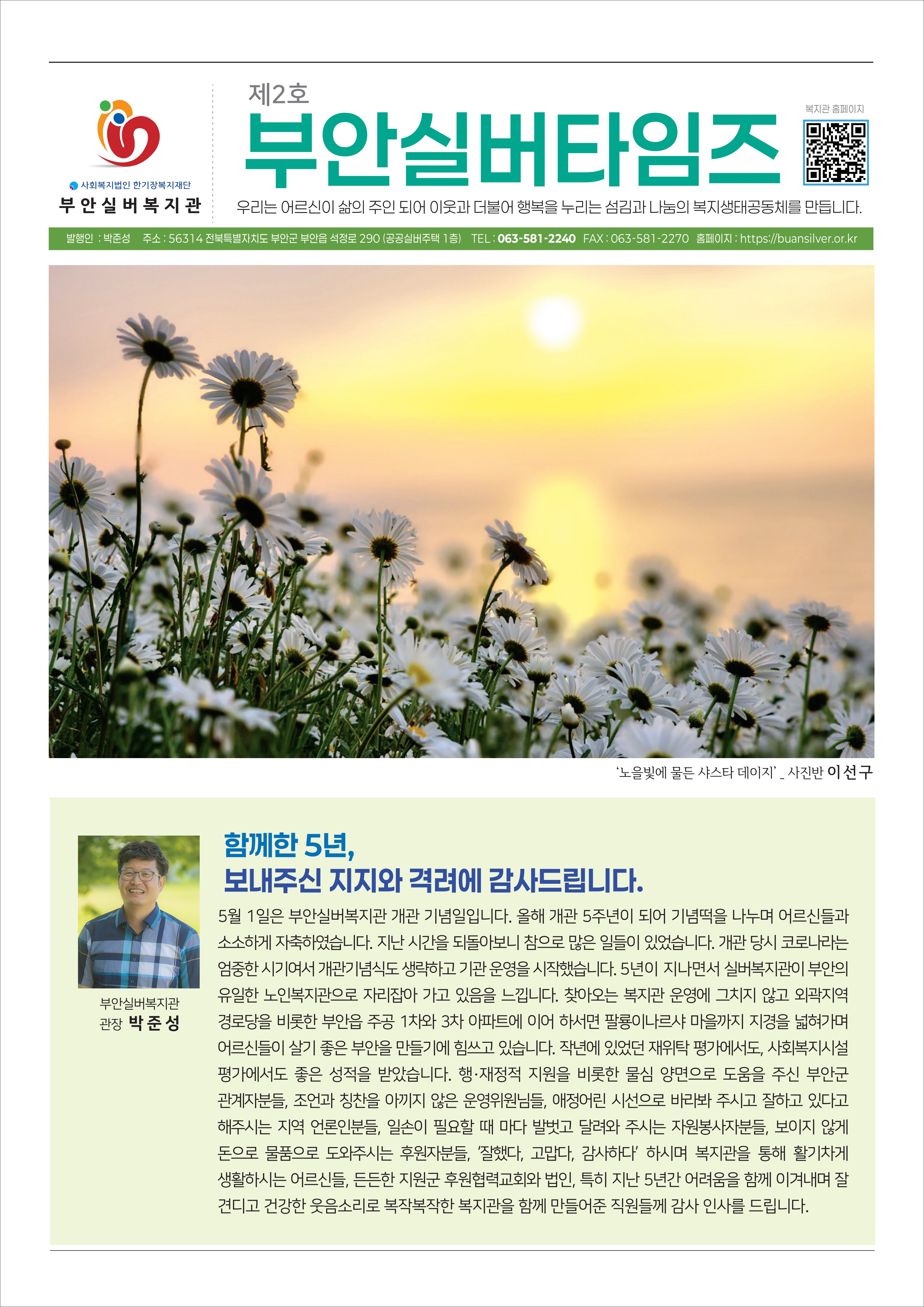 부안실버복지관 소식지 '부안실버타임즈' 2호가 발행되었습니다.