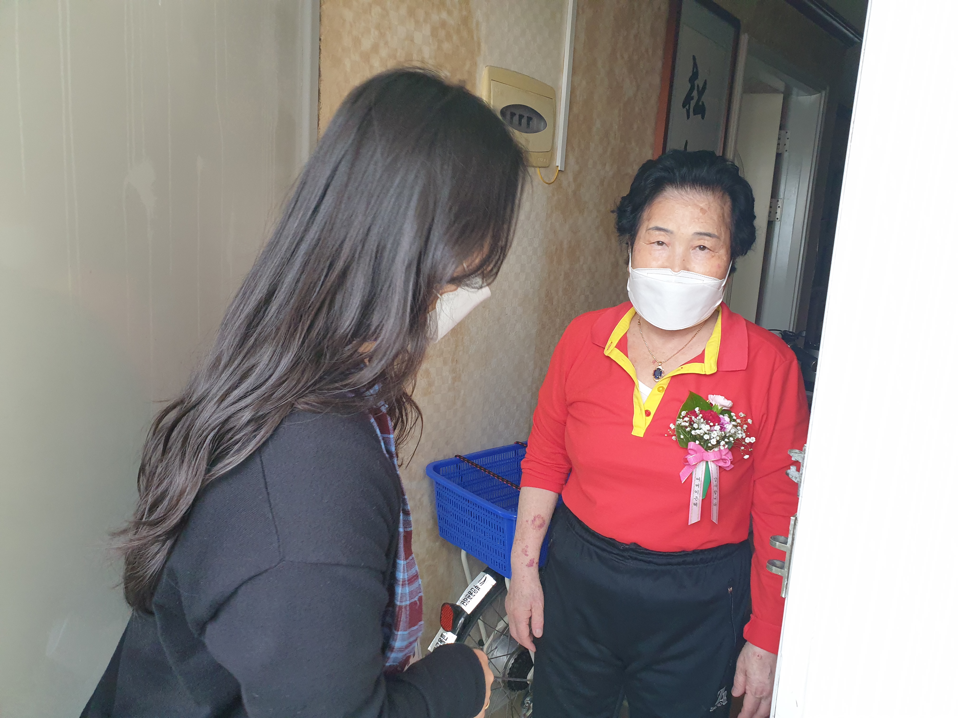 실버주택에 거주하는 어르신댁을 가가호호 방문하여 카네이션을 달아드리고,