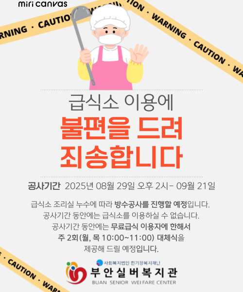 | 'The 행복한밥상' 급식소 운영 재개 안내 (1) | 2025.09.10 |
