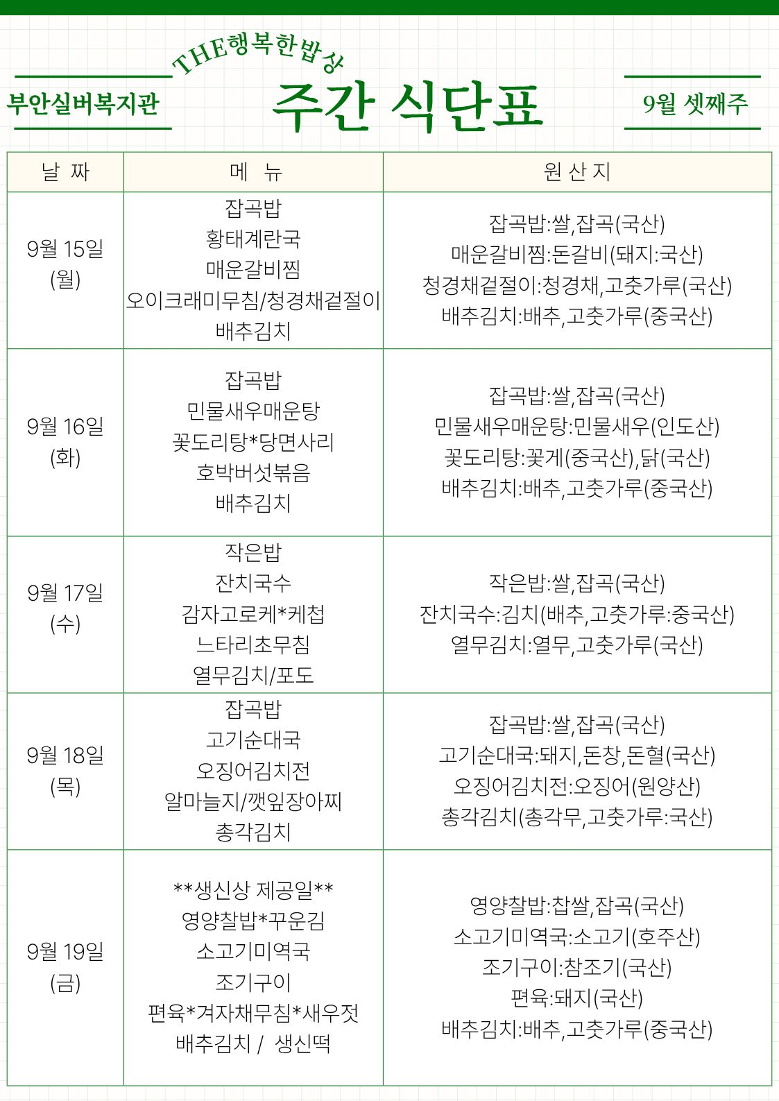 | 복지관 식단표 - 9월 5주 (0) | 2025.09.29 |