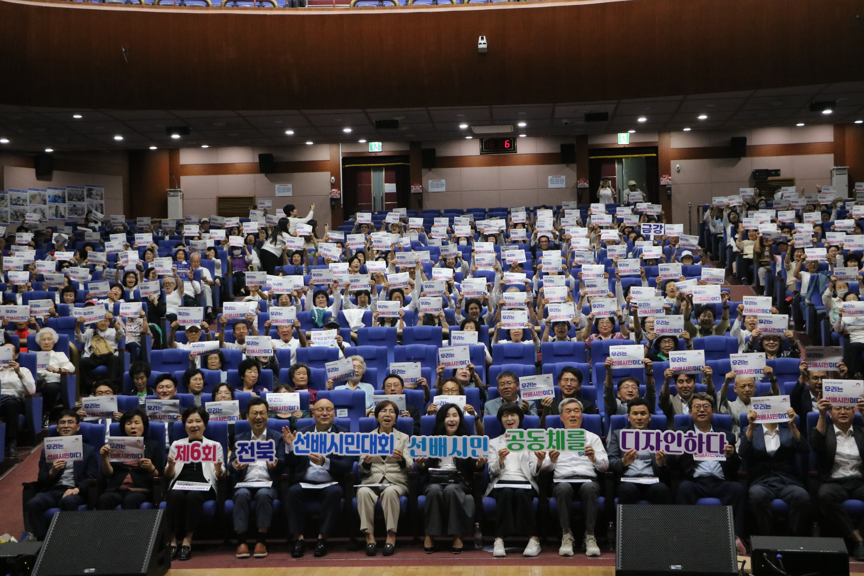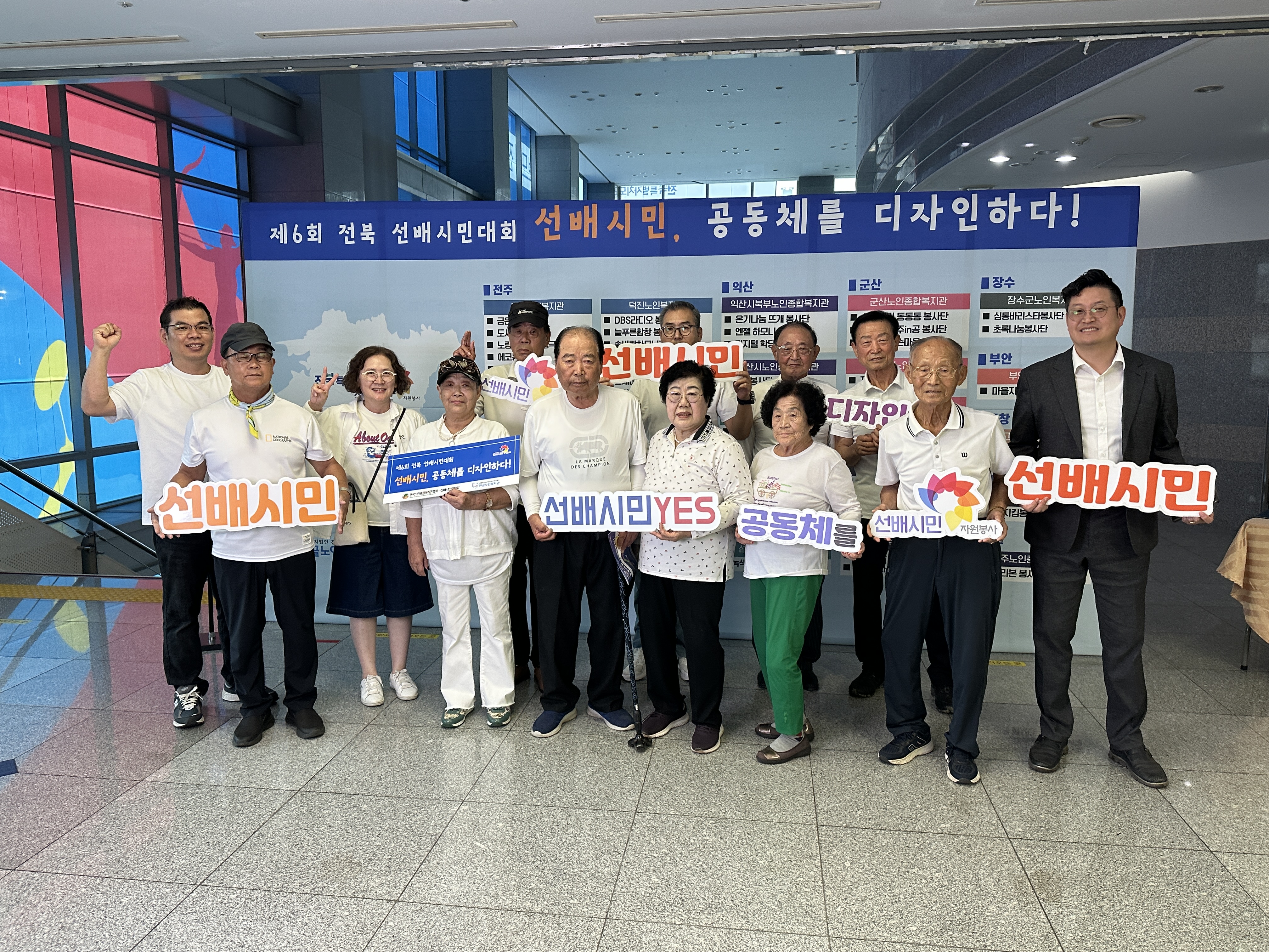 부안실버복지관 선배시민 마을지킴이봉사단원들이 지난 9월25일(금) 전북특별자치도청에서 개최된 전북선배시민대회에 참석하였습니다. 전라북도 각 지역에서 활동하고 있는 선배시민 약400여명이 모여 선배시민 봉사단 활동을 공유하고 공동체의 변화 발전을 위한 정책제안을 하였습니다.