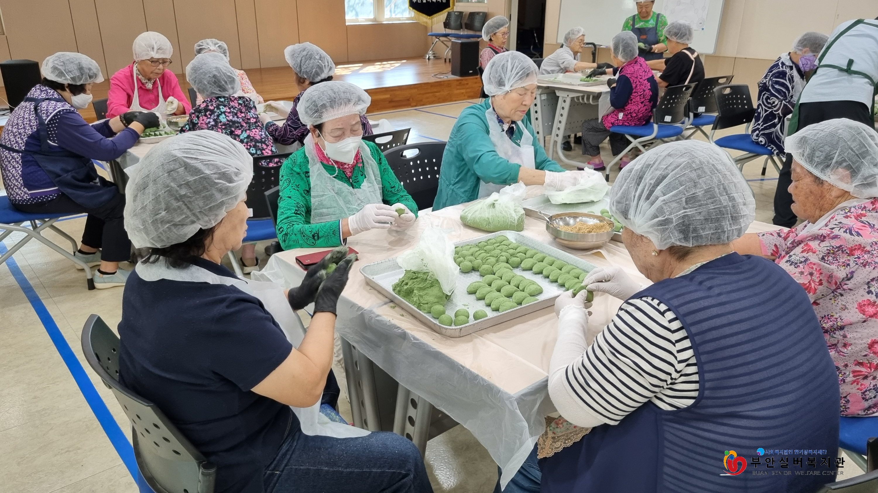 부안실버복지관은 민족 최대 명절인 추석을 맞아 어르신들과 함께하는 ‘더불어 행복한 한가위’ 행사를 진행했습니다. 송편나눔행사는 마을지킴이 선배시민봉사단을 비롯한 복지관 이용 어르신 30명이 참여했습니다.