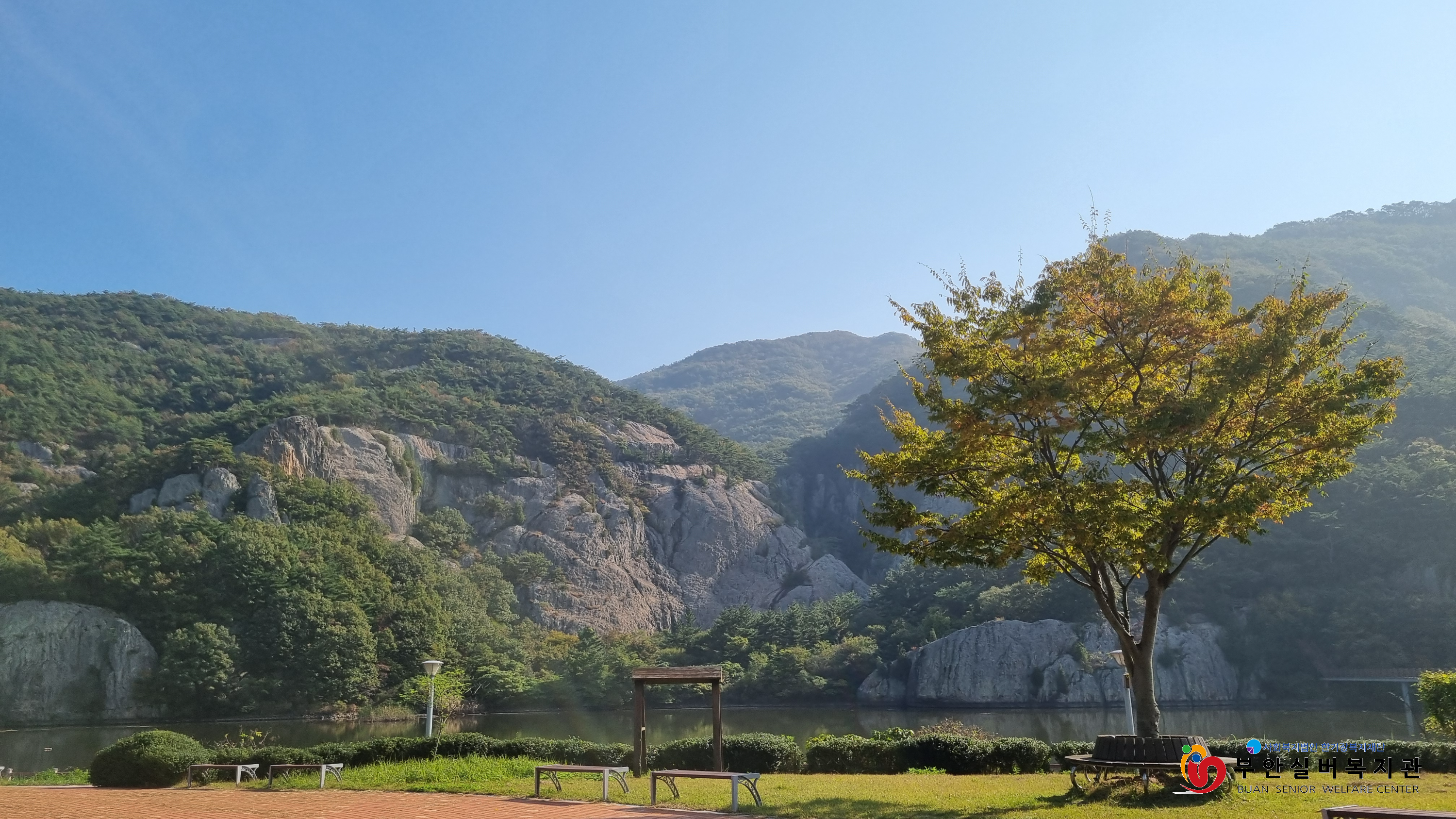 사진반 어르신들이 가을 정취가 물씬 느껴지는 부안 직소천과 부안댐 물문화관으로 야외 출사를 다녀왔습니다. 직소천은 부안댐에서 내려온 물을 담은 저수지입니다. 부안댐으로 가는 길에 만날 수 있는데 저수지를 둘러싼 절벽과 숲 풍경이 장관입니다. 저수지 근처를 공원으로 조성해 풍경을 감상하며 잠시 쉬어가기에 더없이 좋은 휴식처입니다.
