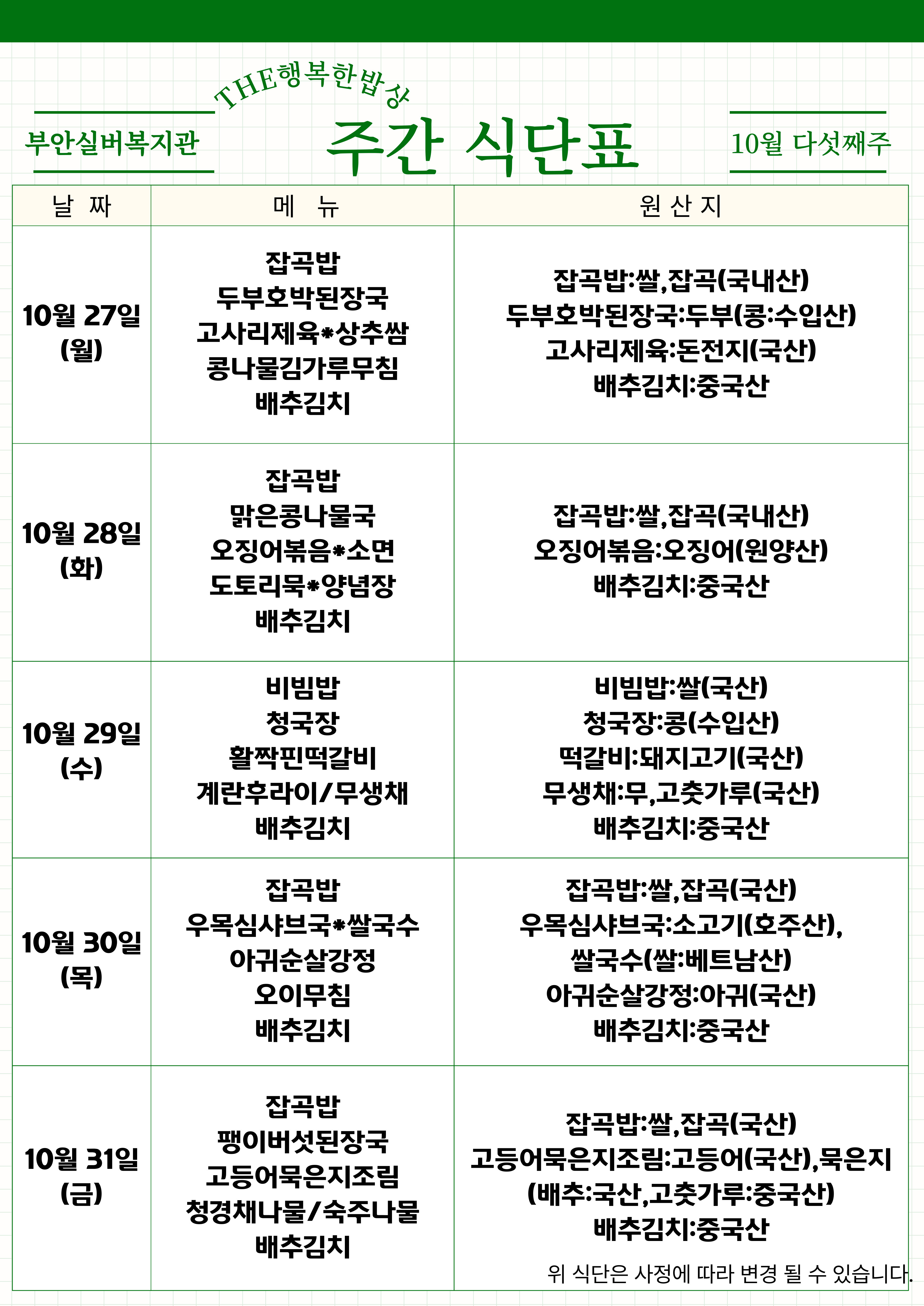 | 복지관 식단표 - 10월 4주 (0) | 2025.11.12 |